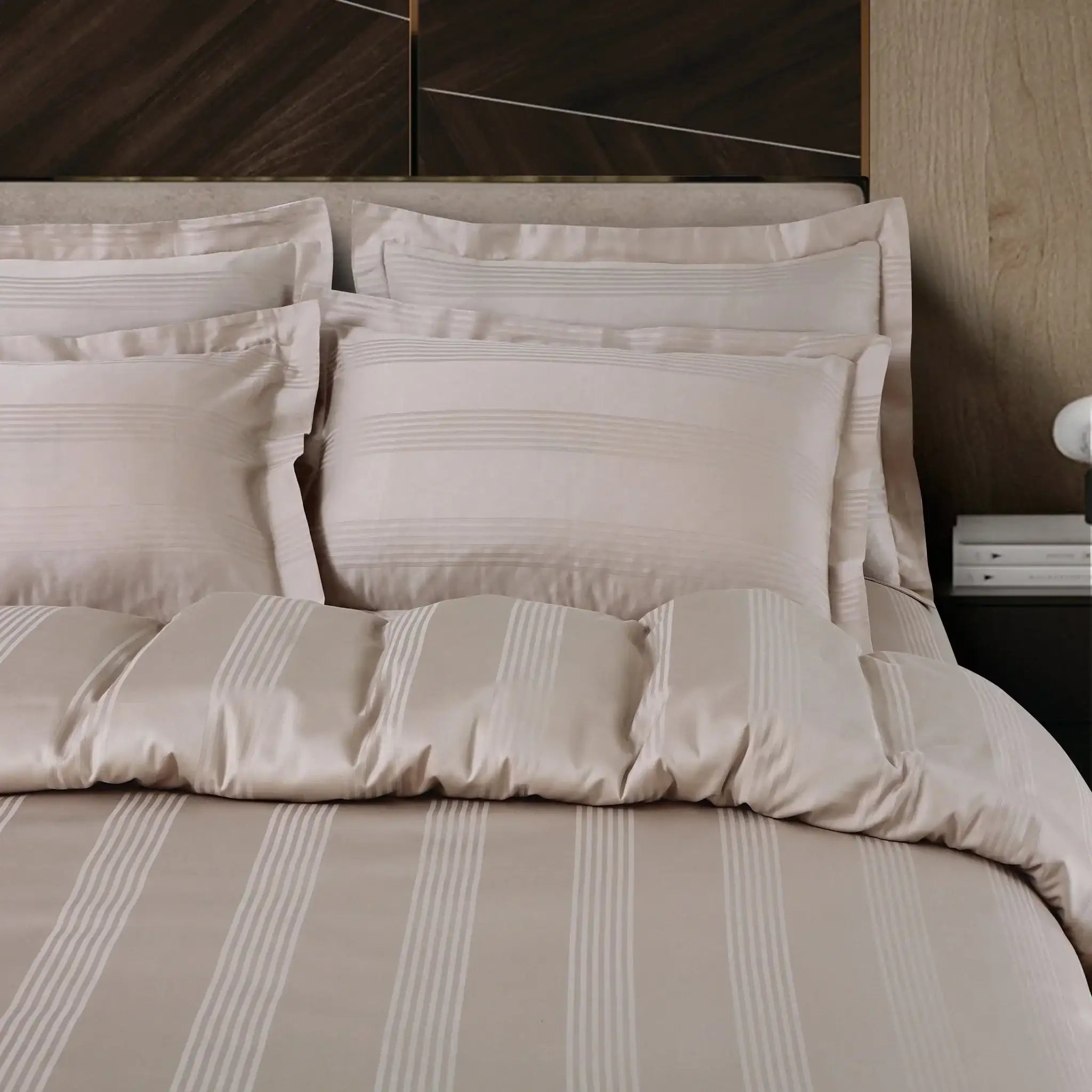 Malako Turin Jacquard Beige Stripes 450 TC 100% Cotton Duvet Cover