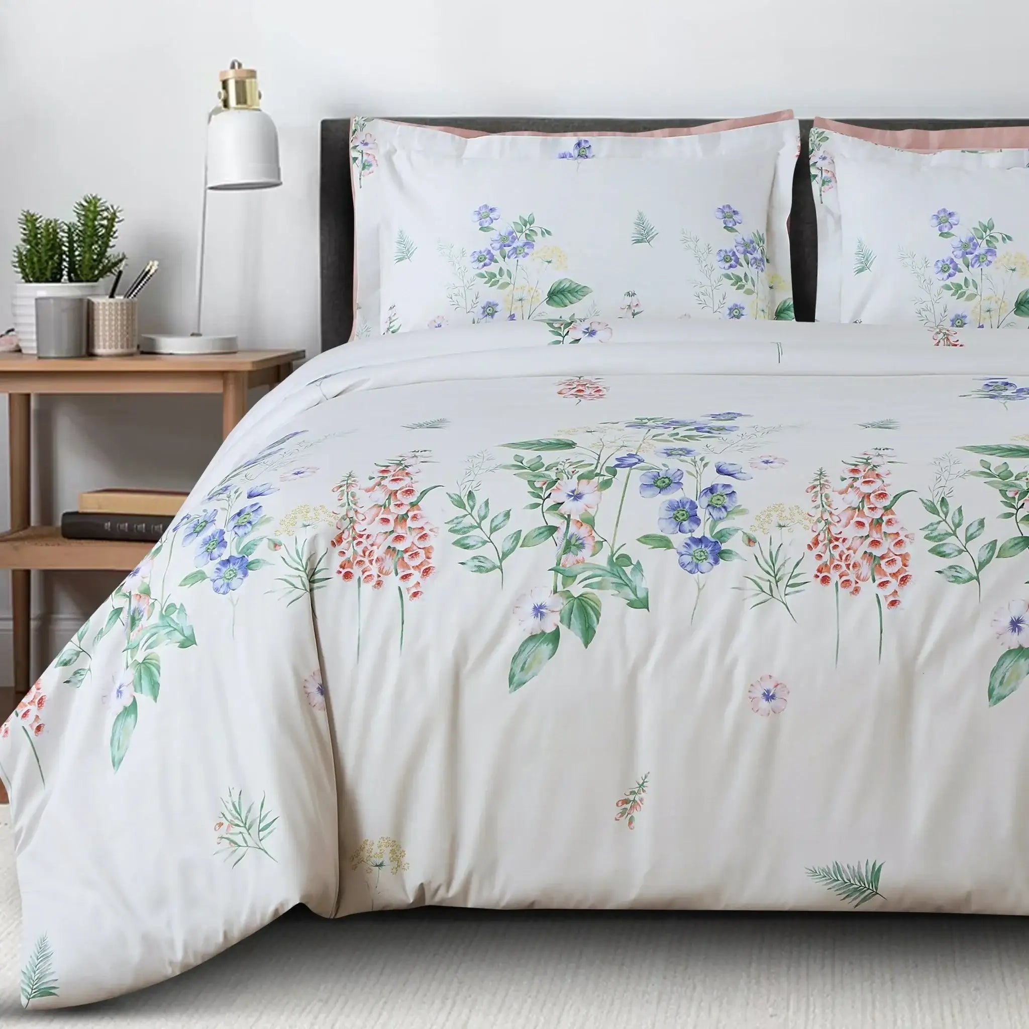 6. Malako Sion 500TC Egyptian Cotton Off-White Botanic Bed Sheet/Bedding Set