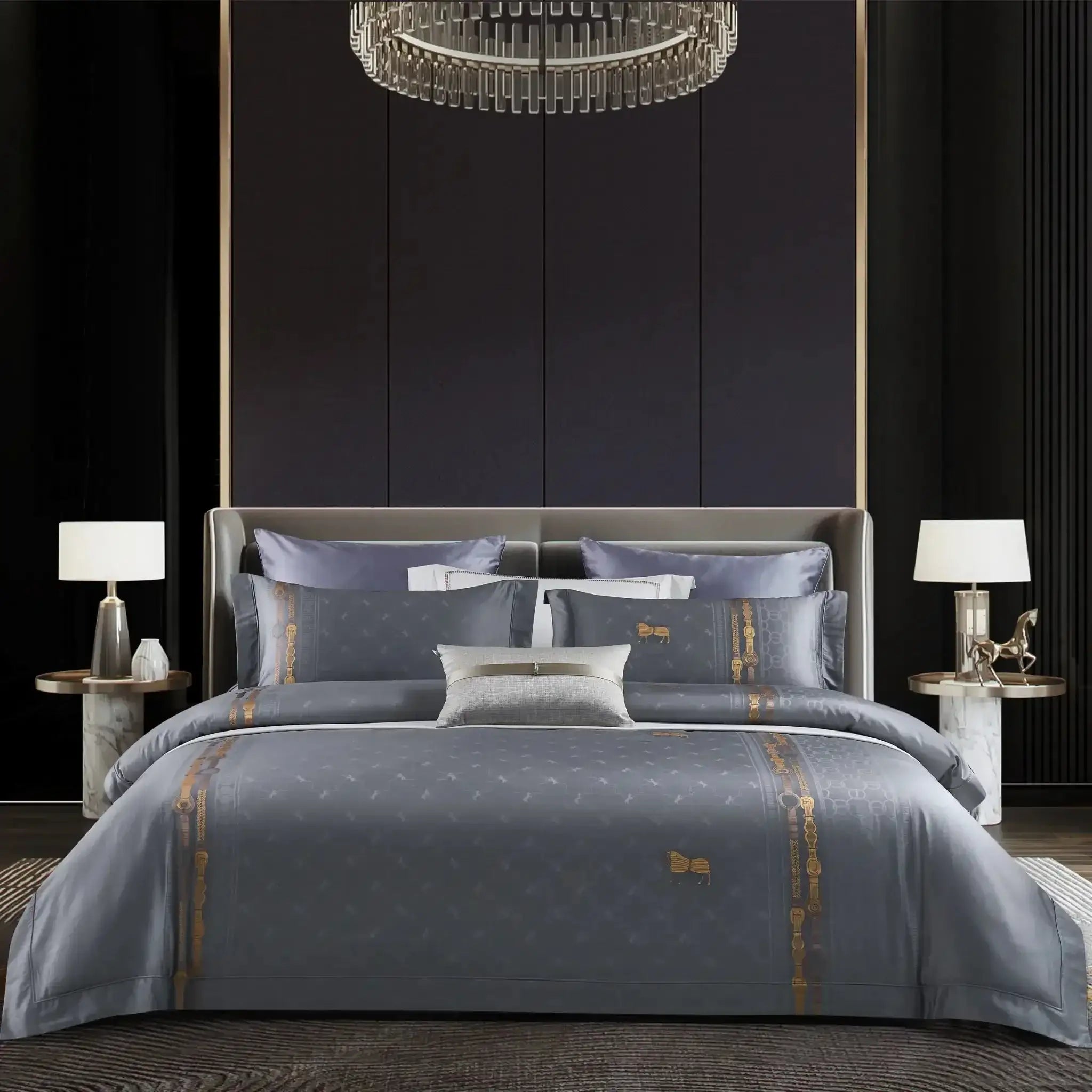 Indulge in luxury with our 800 thread count grey jacquard Egyptian cotton bedding collection. Choose from a three-piece jacquard bed sheet set or a jacquard duvet cover to elevate your bedroom decor.