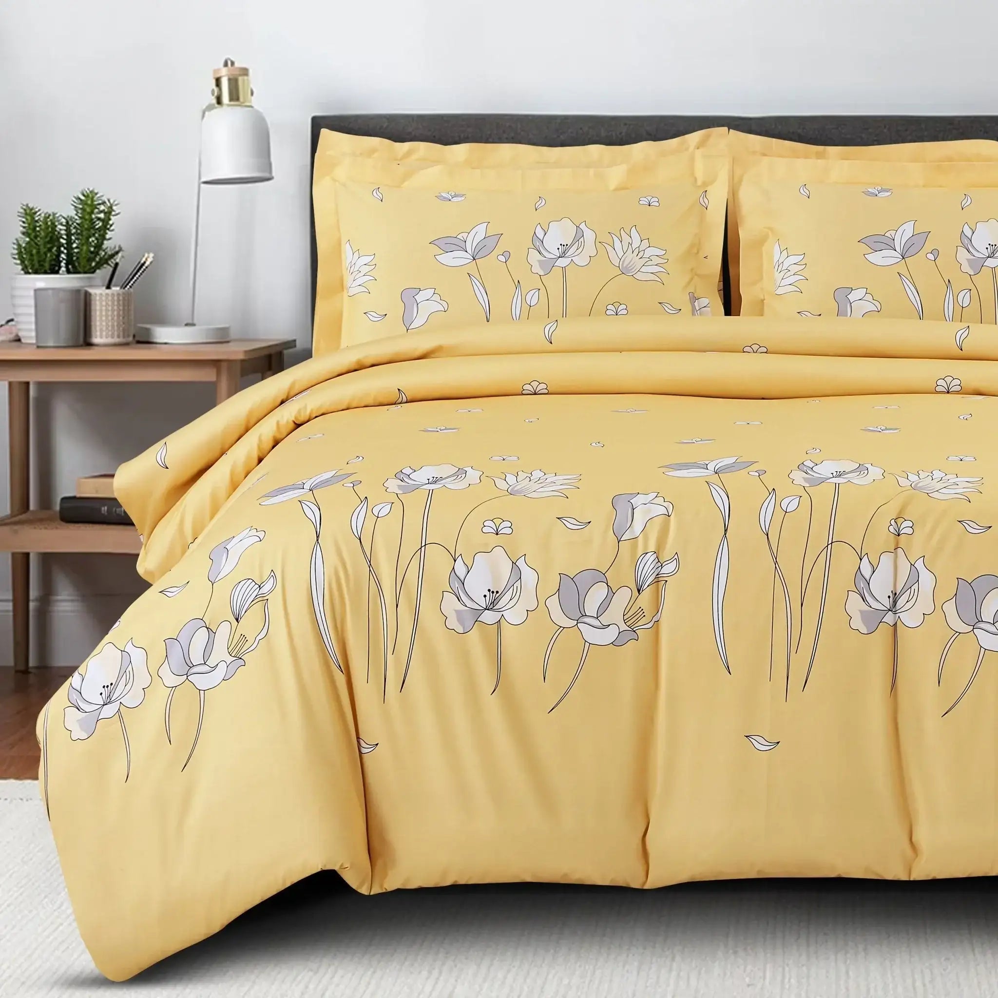 3. Malako Sion 500TC Egyptian Cotton Yellow Botanic Bed Sheet/Bedding Set