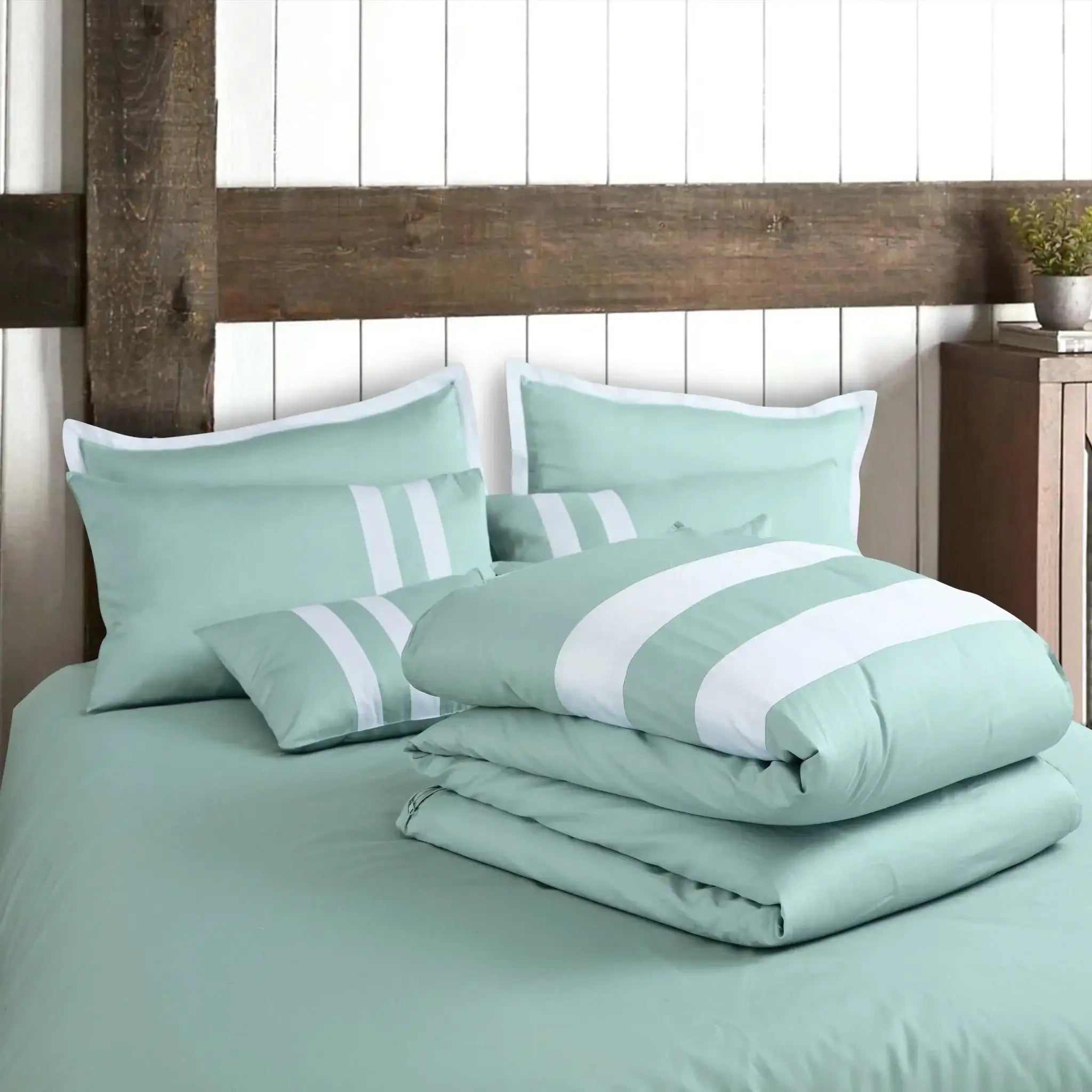 2. Malako Luxe Mint Green Plain Striped 100% Cotton King Size Duvet Cover Set