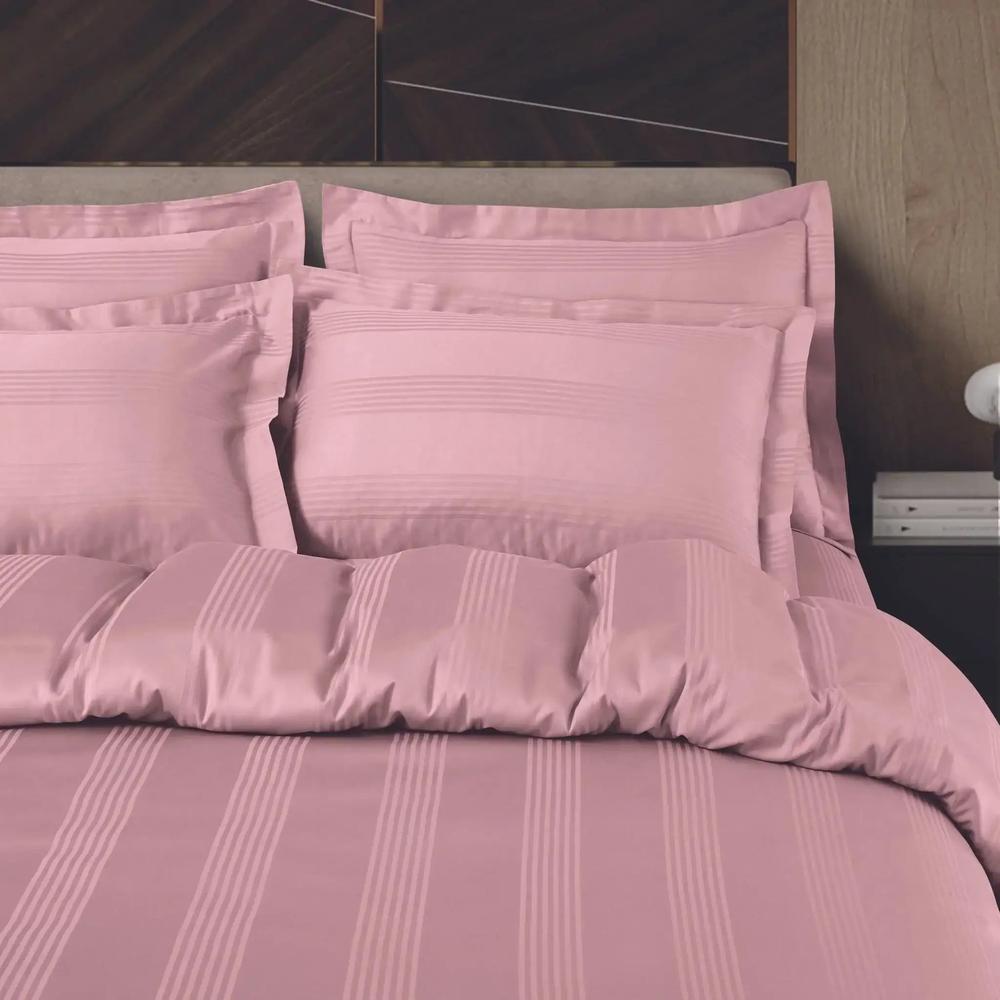 3. Malako Turin Jacquard Blush Pink Stripes 500 TC 100% Cotton King Size 7 Piece Duvet Cover Set