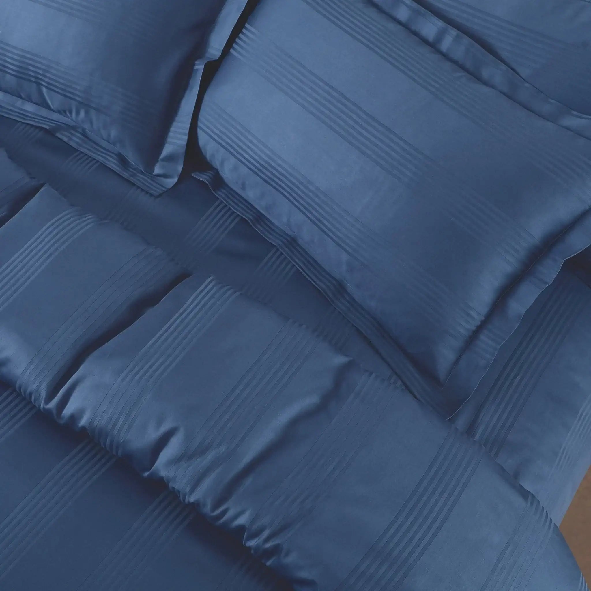 The Malako Turin Jacquard Blue Stripes set offers a timeless design with its classic blue stripe pattern. The 500TC cotton fabric provides a luxurious feel, ensuring you sleep in comfort and style. This set is perfect for those who appreciate a traditional yet chic look.