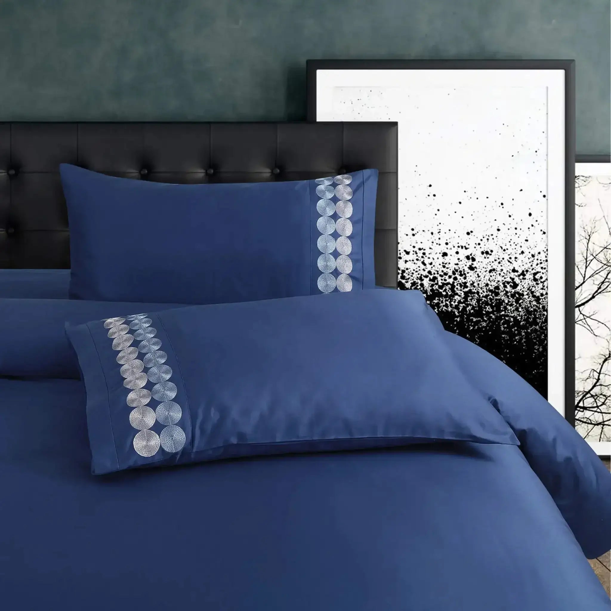 Elevate your bedroom with the Malako Vivid Embroidered 500 TC King Size Bed Sheets/Duvet Cover Sets. This collection features a 5-piece bedsheet set, including 1 bedsheet and 2 embroidered and 2 plain pillow covers. The king-size bedsheet measures 275cm x 275cm, and the pillow covers are 46cm x 69cm. The 6-piece duvet cover set comprises 1 duvet cover, 1 bedsheet, and 2 each of embroidered and plain pillow covers. The duvet cover measures 235cm x 275cm.