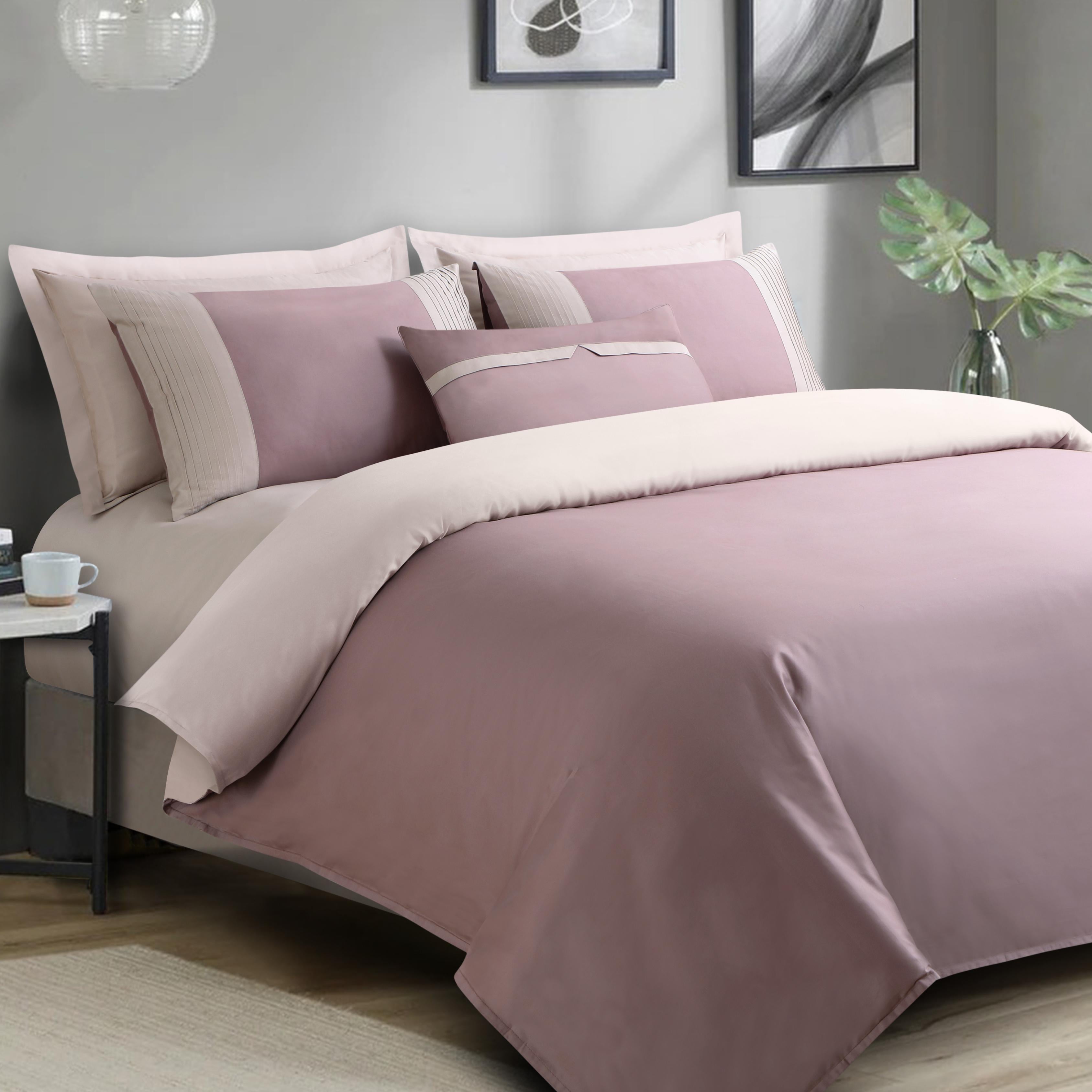 Wine bedding set with pillows on a bed in a room setting.