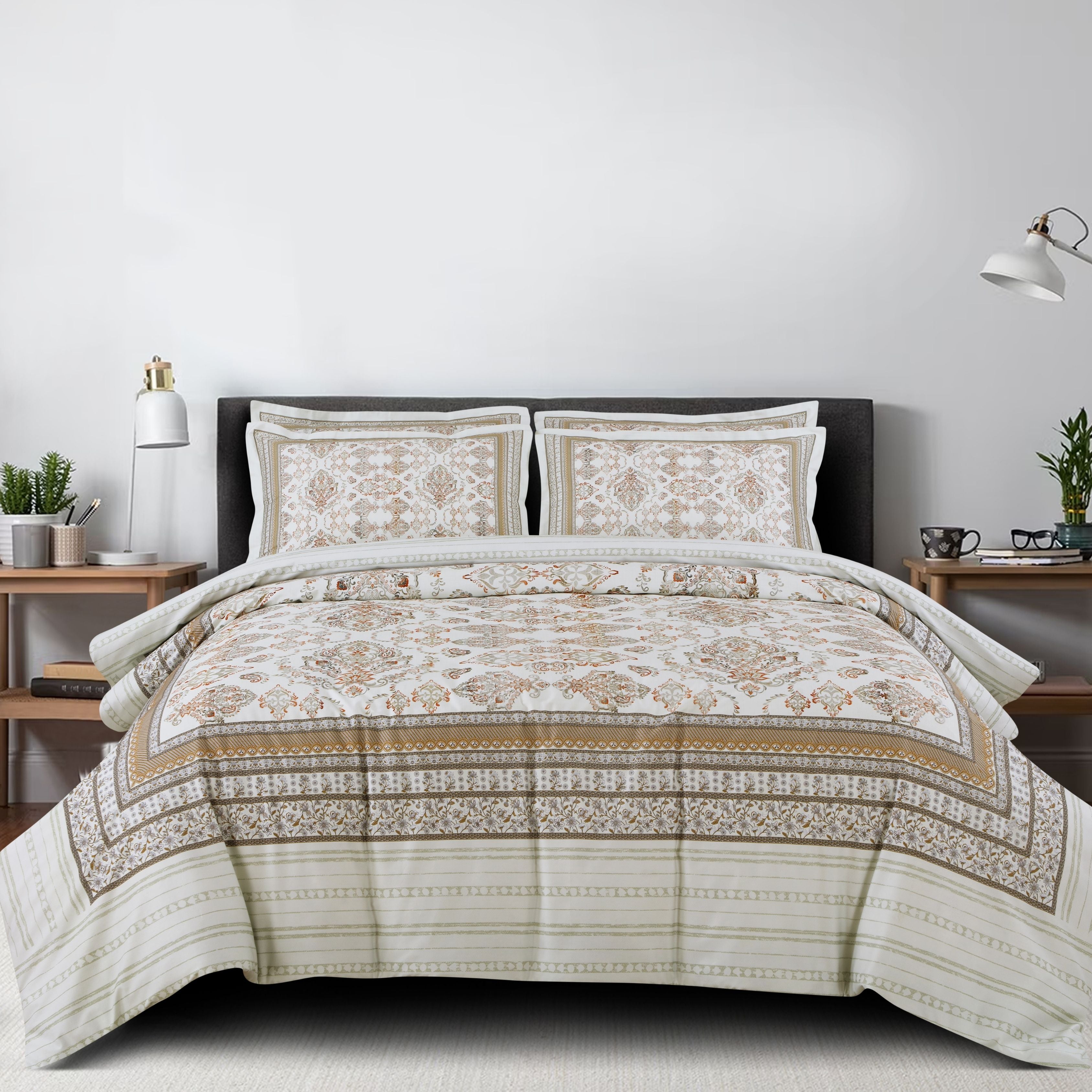 Malako Basel 100% Olive Beige Ethnic Cotton King Size Bedding
