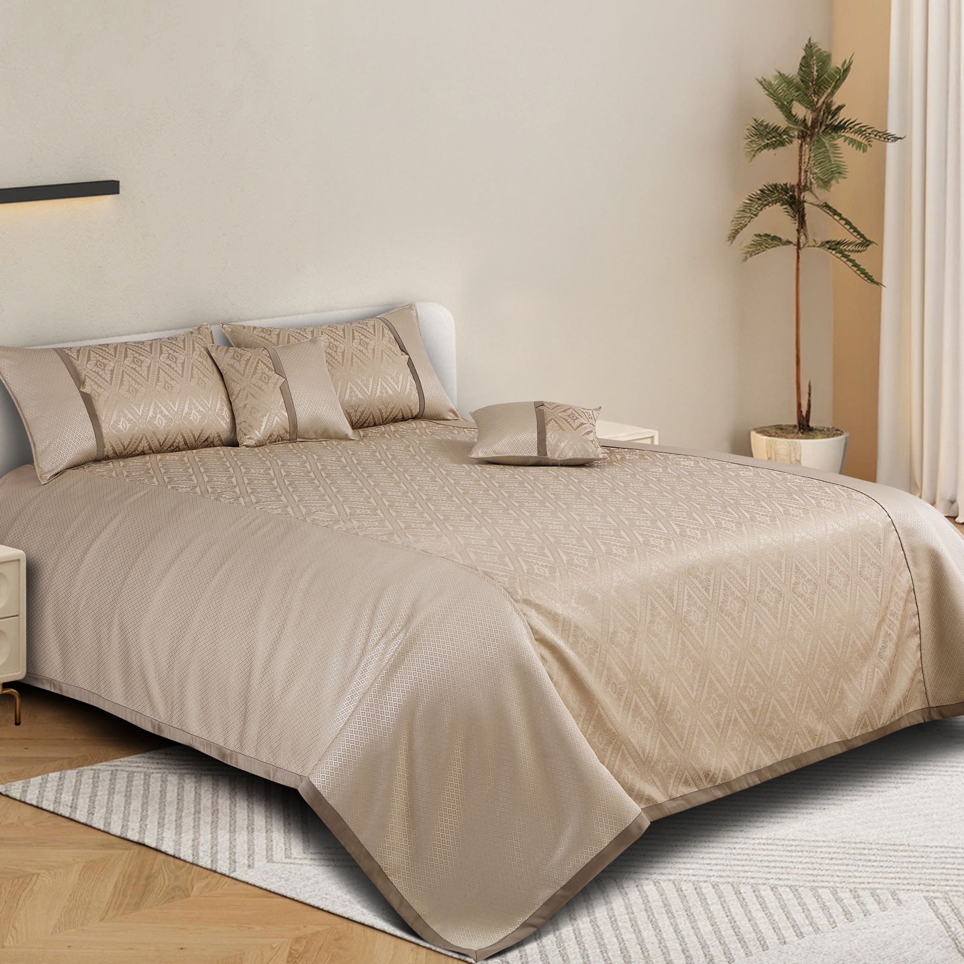 Malako Beige Jacquard King Size 5 Piece Bedspread Set
