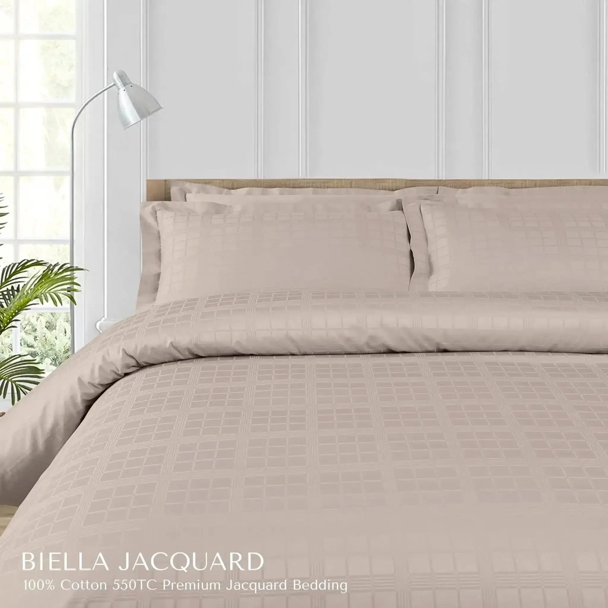 Malako Biella Jacquard Beige Checks 550 TC 100% Cotton King Size 6 Piece Bedding Set