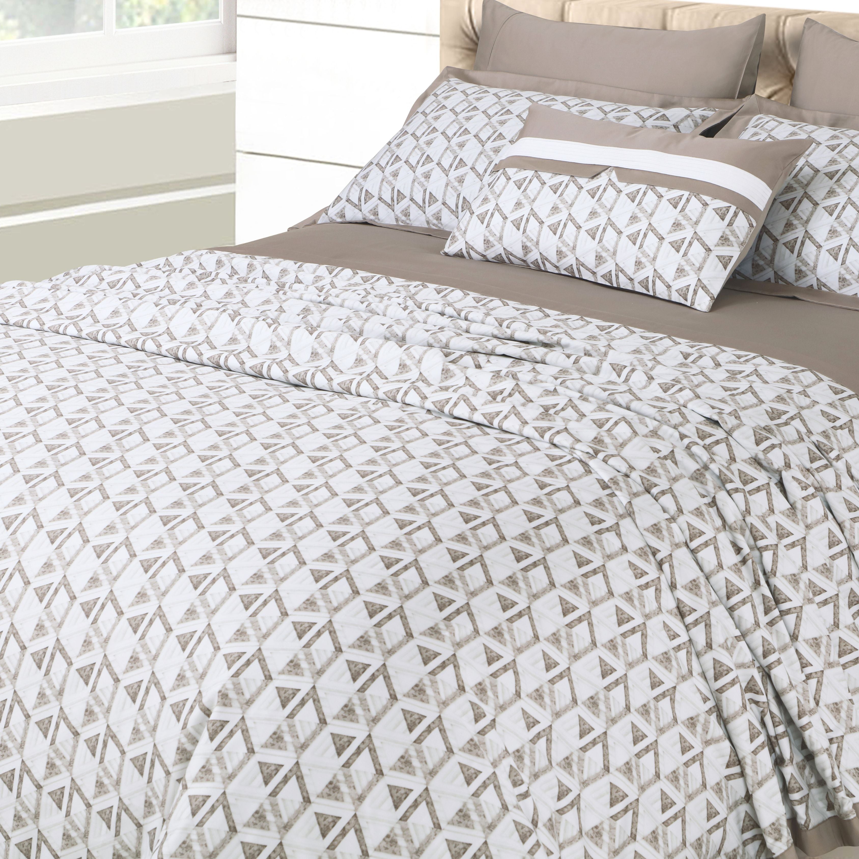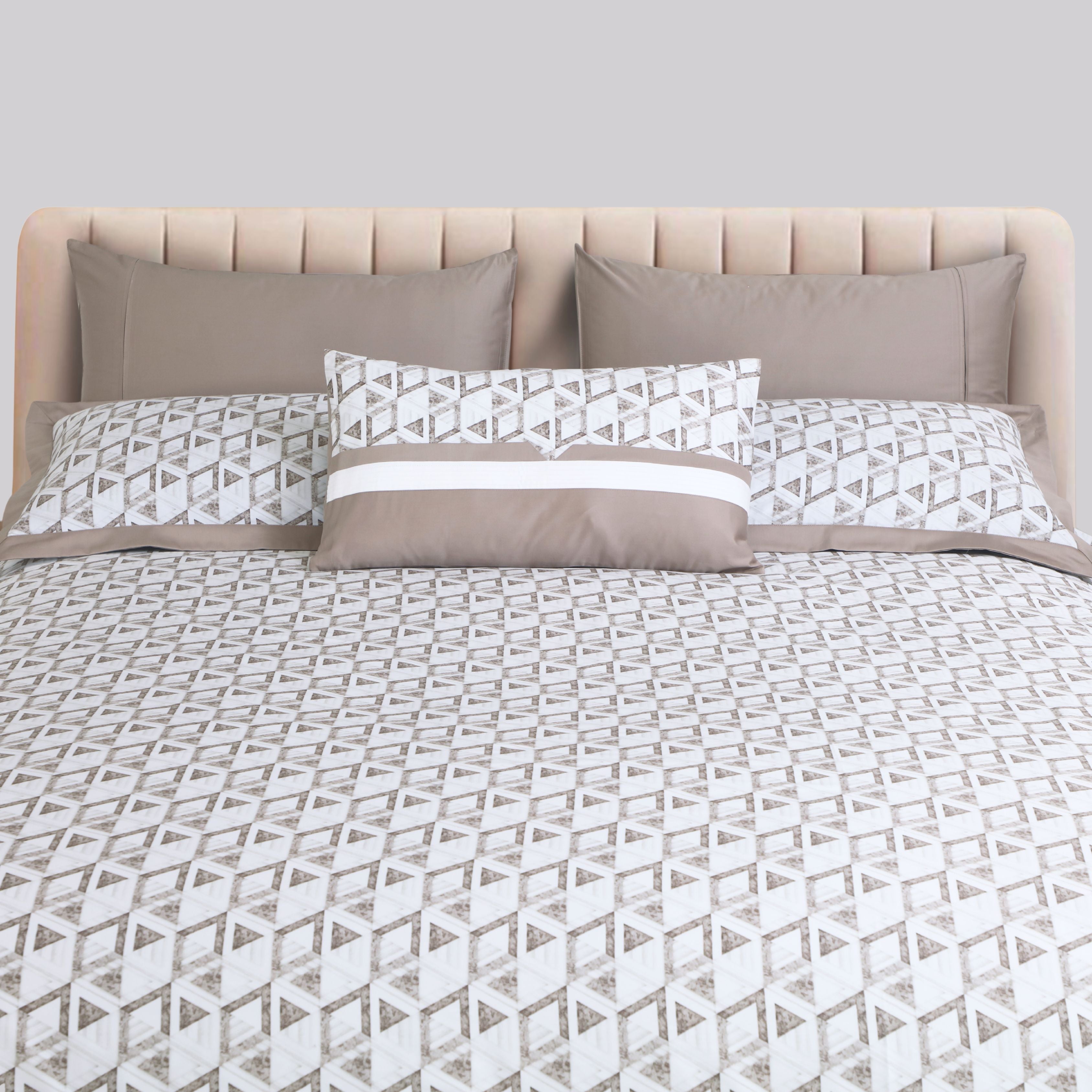 Malako Caèn 100% Cotton White & Beige Modern Abstract 7 Piece Flannel Dohar Set