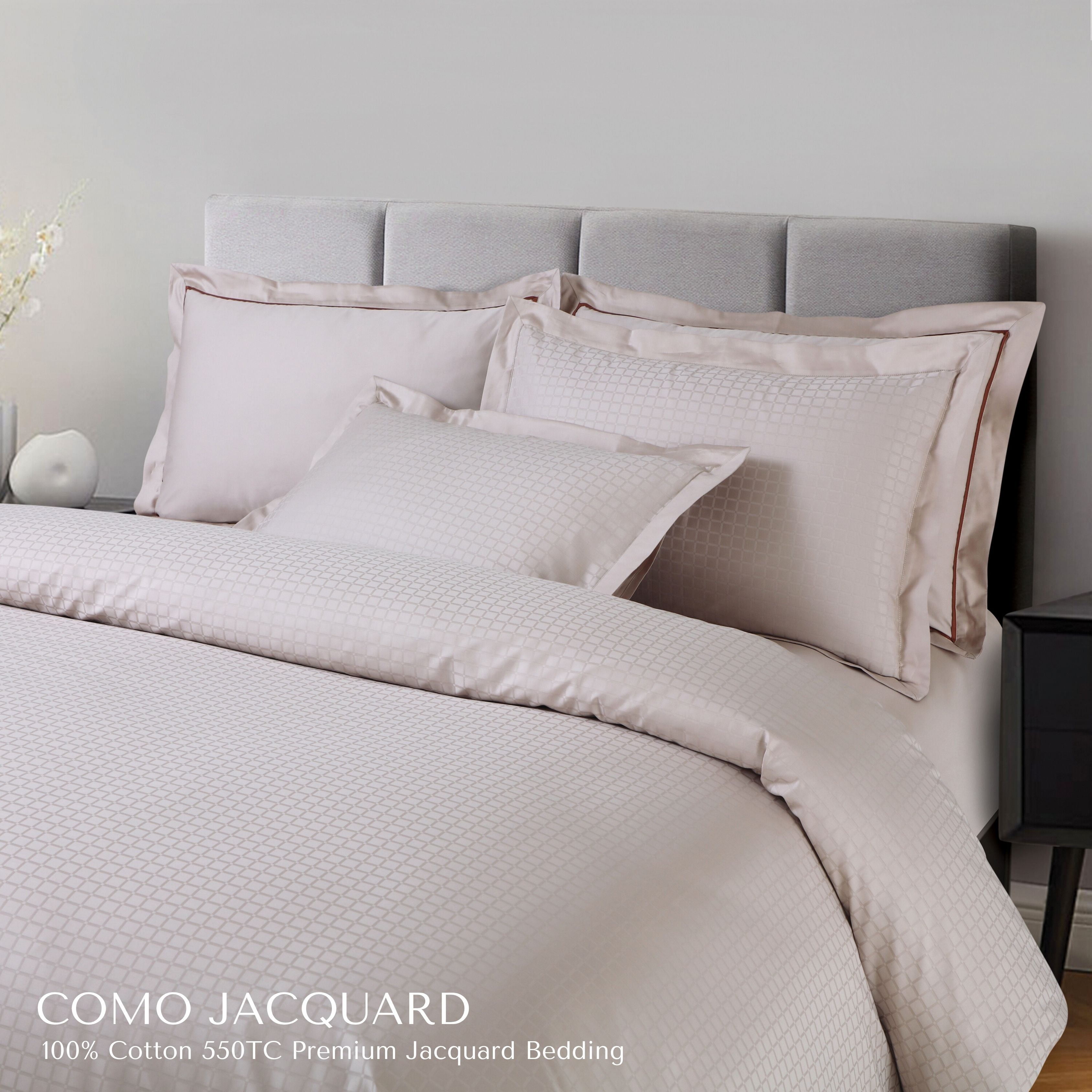 Malako Como Jacquard Beige Checks 550 TC 100% Cotton King Size Duvet Cover Set