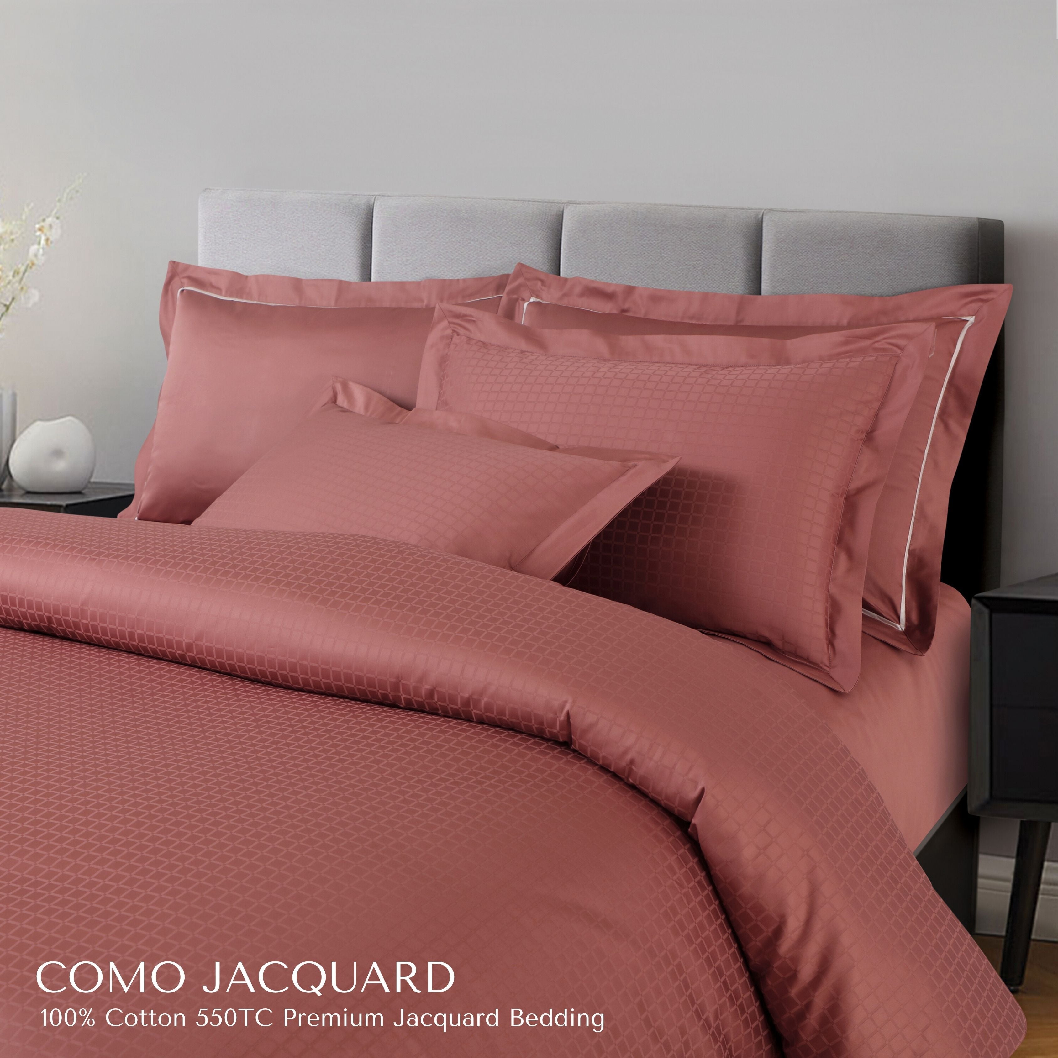 The Malako Como Jacquard Cedar/Rust Duvet Cover Set combines bold aesthetics with everyday comfort. Its 550TC cotton ensures silky softness, breathability, and long-lasting durability, while the checkered jacquard weave adds texture and depth. The warm cedar/rust tone creates a cozy yet elegant atmosphere—perfect for a timeless, sophisticated upgrade to your bedroom.