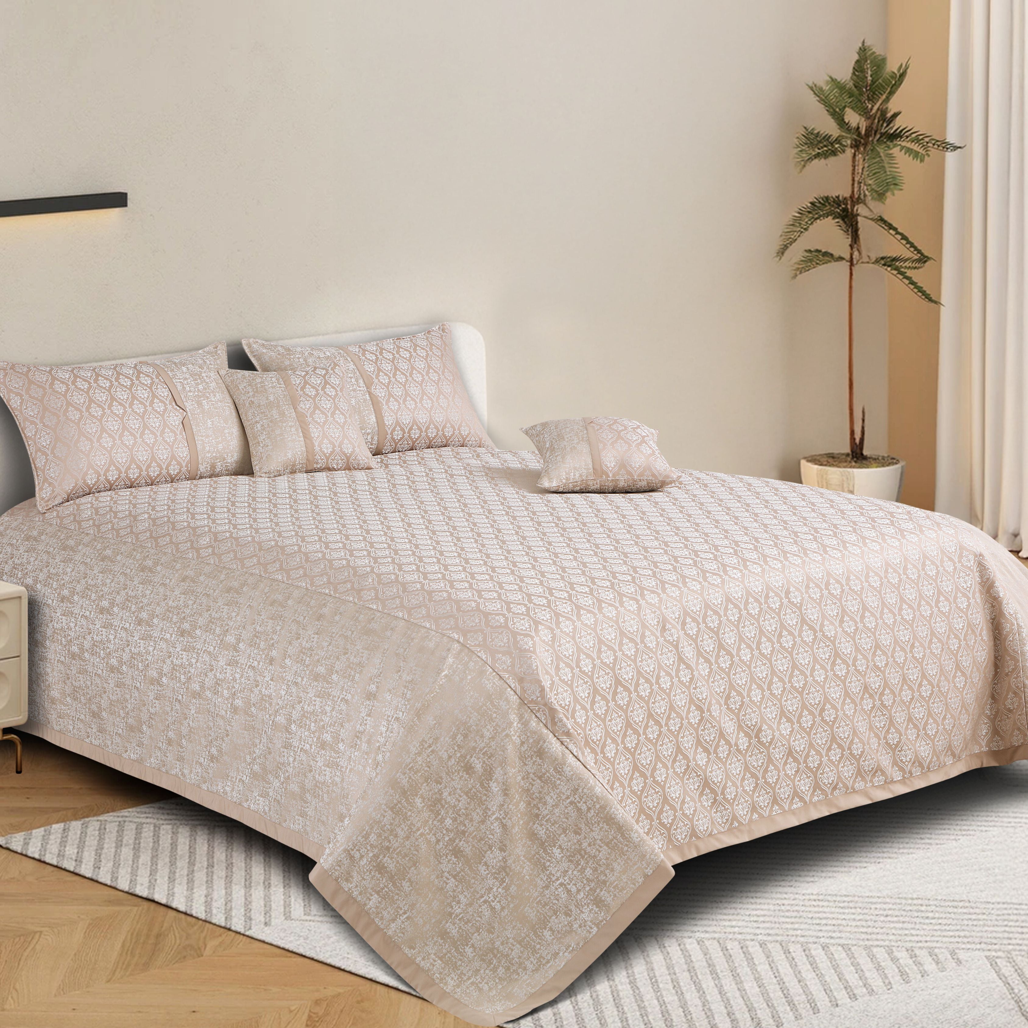 Malako Almond Beige Jacquard King Size 5 Piece Bedspread Set