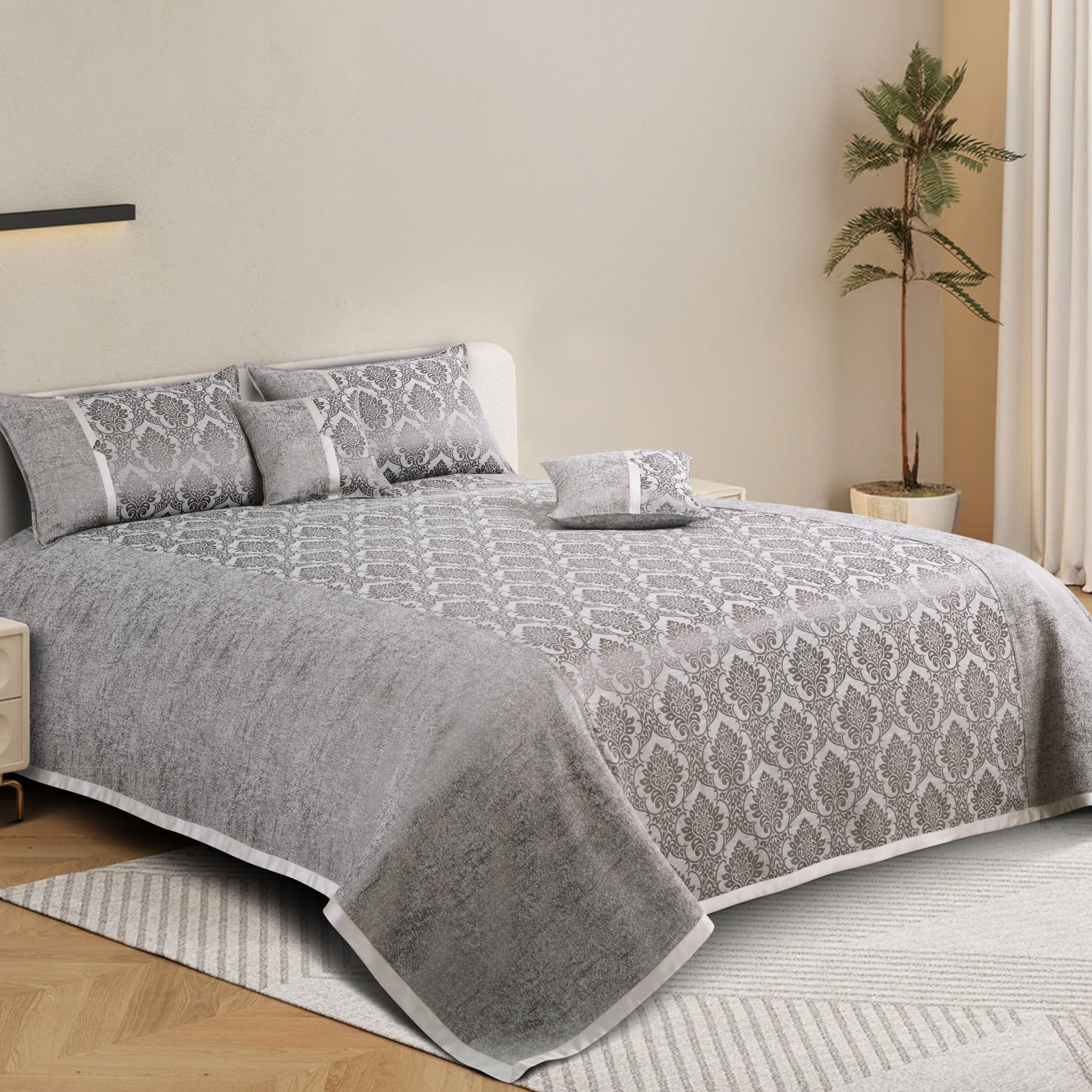Malako Grey Jacquard King Size 5 Piece Bedspread Set
