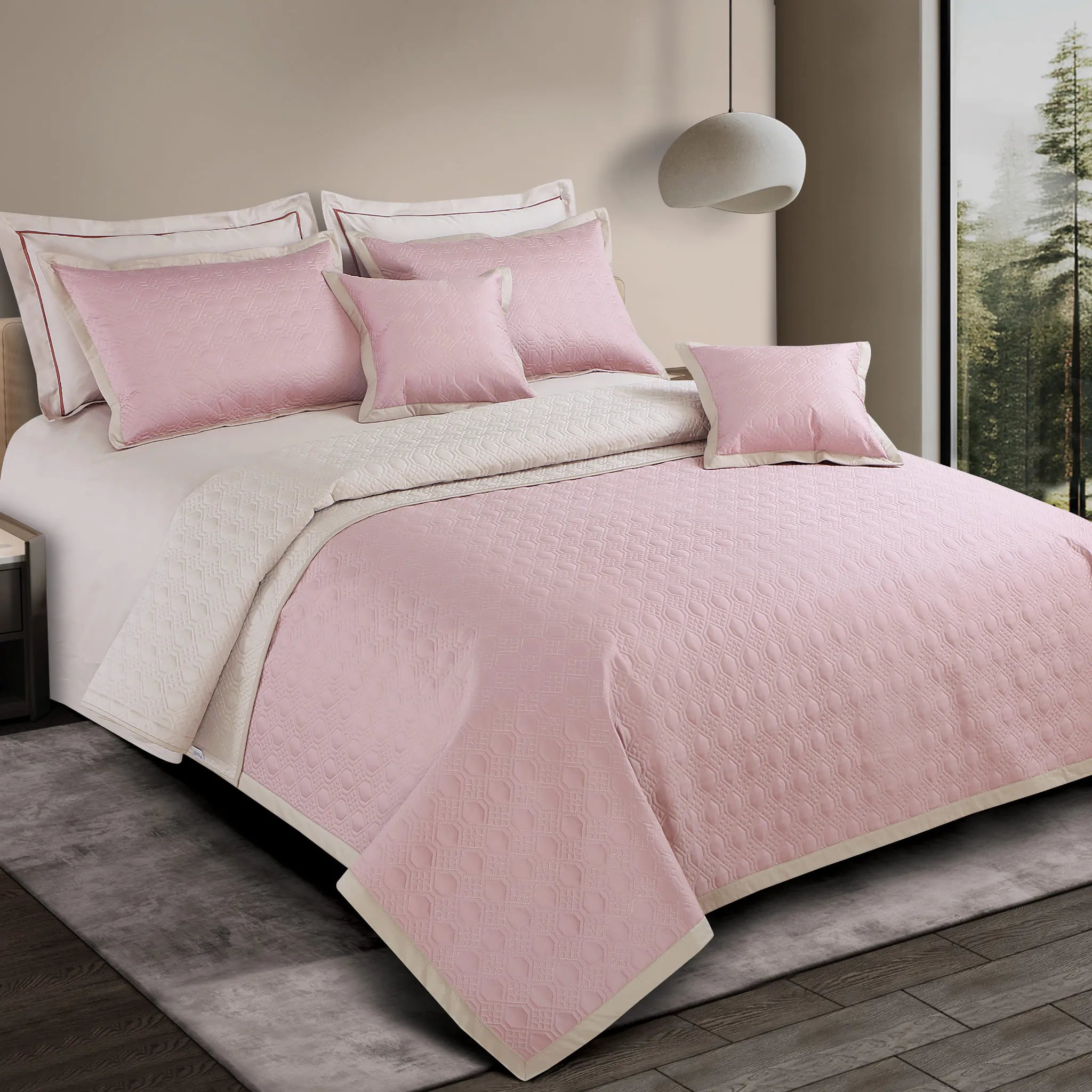 Malako Luxe 550 TC 100% Cotton Blush Pink & Beige Solid King Size Reversible Bedspread Set