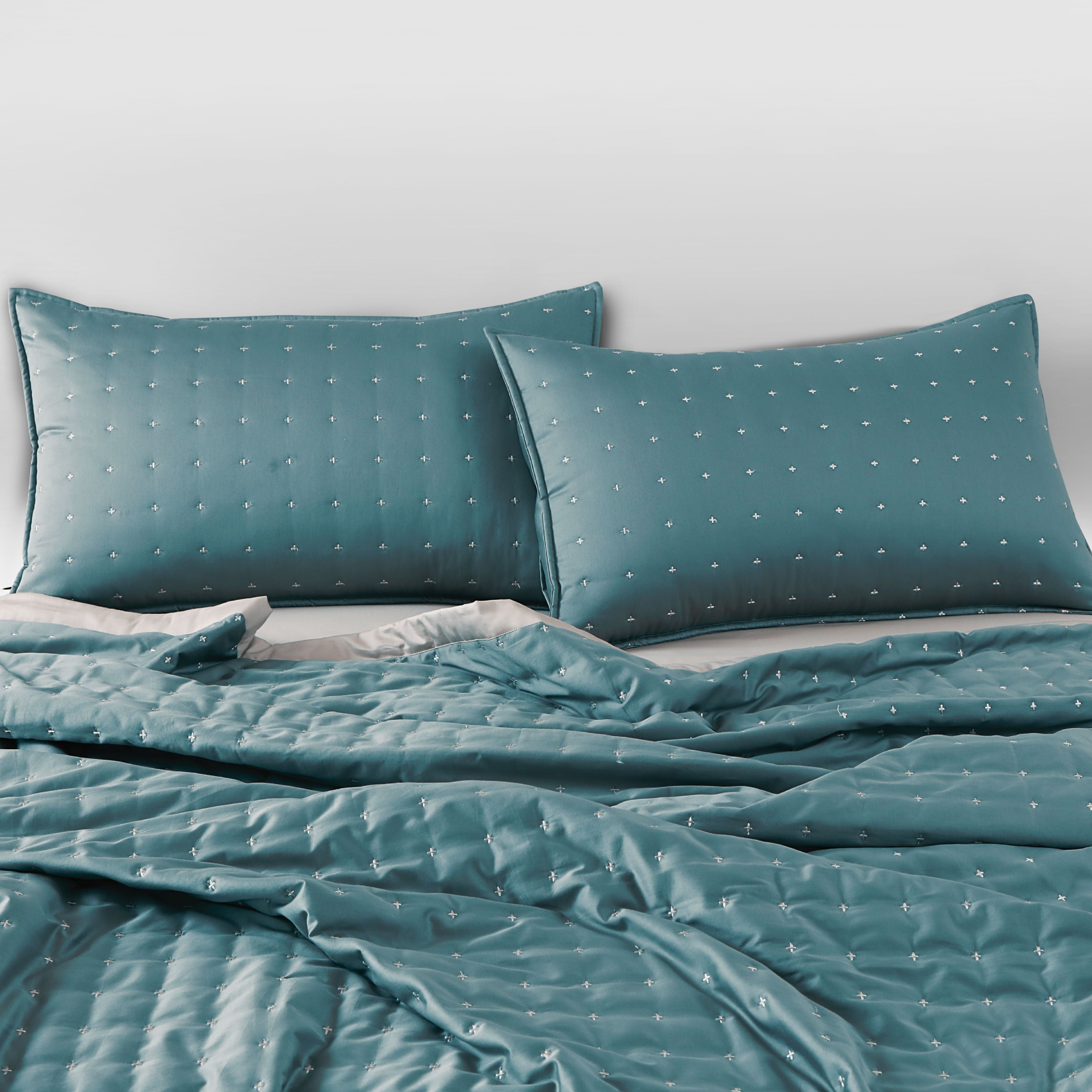 5 Piece Set Includes: (1 Reversible Bedcover + 2 Pillow Covers + 2 European Shams)