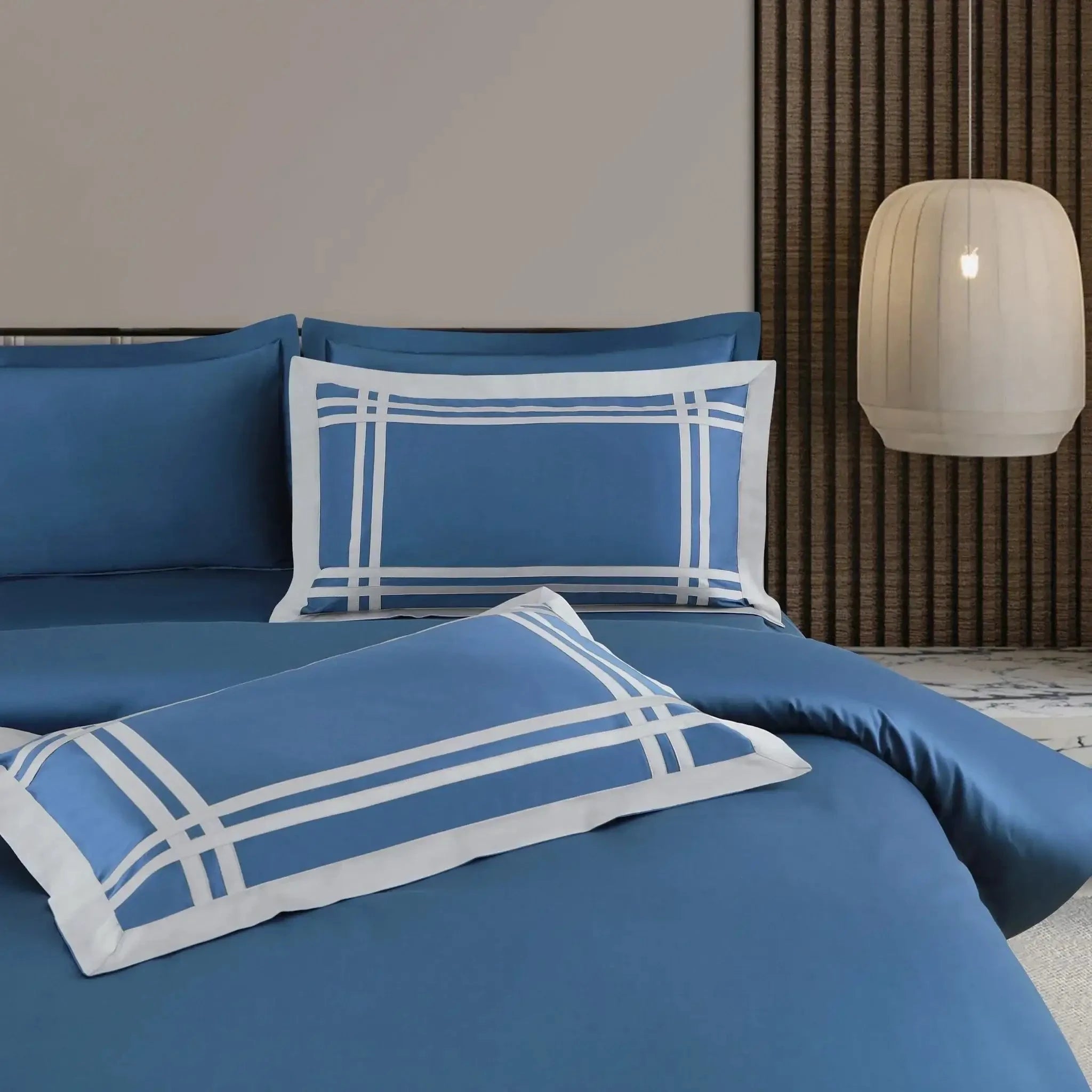 550TC King Size 6-Piece Duvet Cover Set, crafted from 100% premium cotton. The complete set includes one bedsheet, two striped pillow cases, two plain pillow covers and one duvet cover.