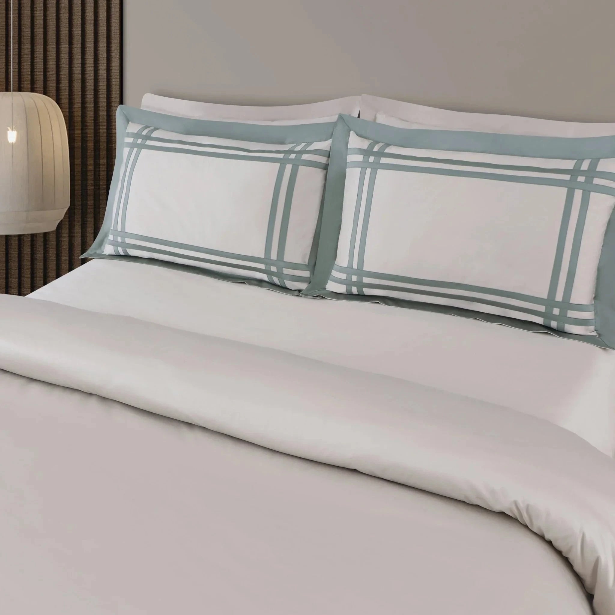 550TC King Size 6-Piece Duvet Cover Set, crafted from 100% premium cotton. The complete set includes one bedsheet, two striped pillow cases, two plain pillow covers and one duvet cover.