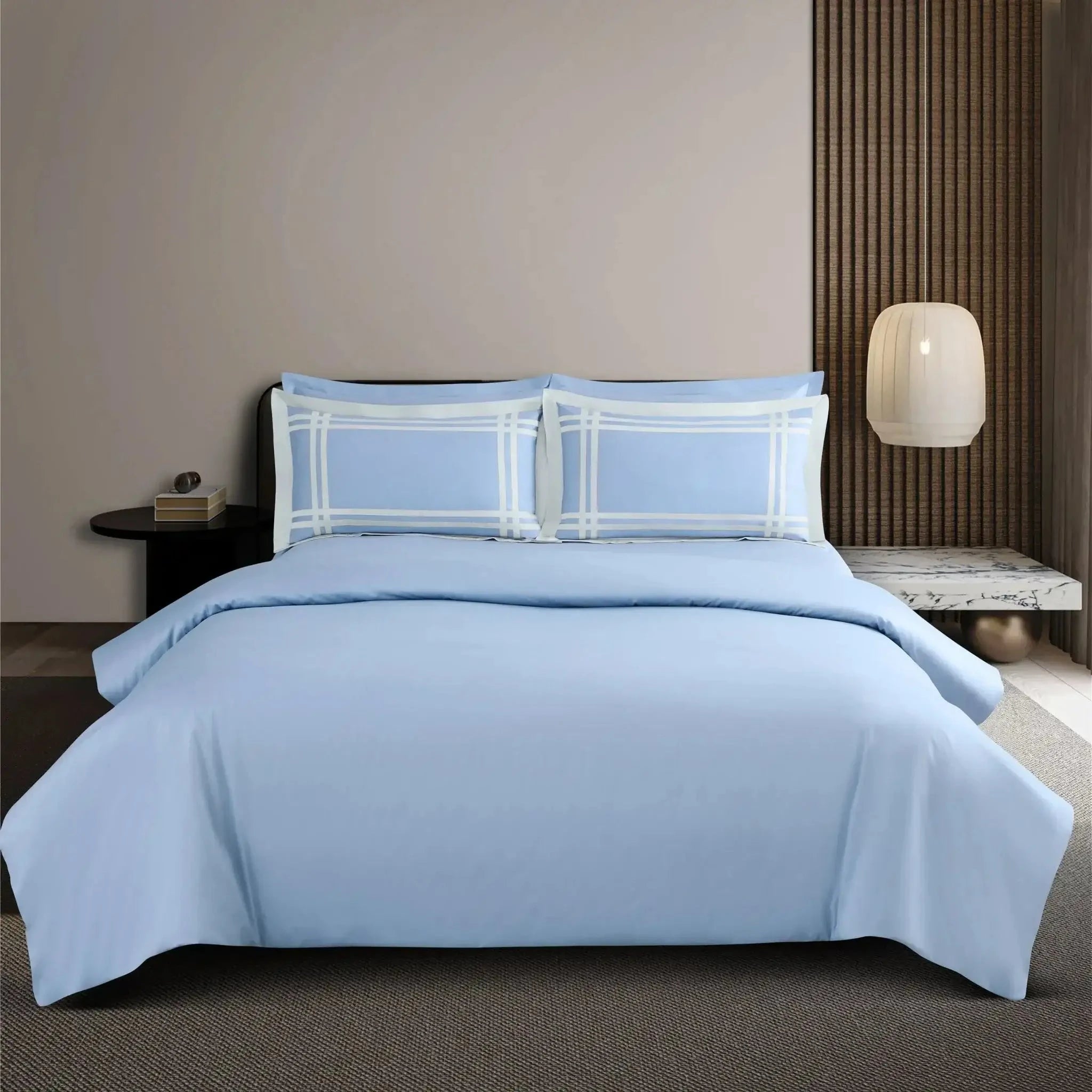 550TC King Size 6-Piece Duvet Cover Set, crafted from 100% premium cotton. The complete set includes one bedsheet, two striped pillow cases, two plain pillow covers and one duvet cover.