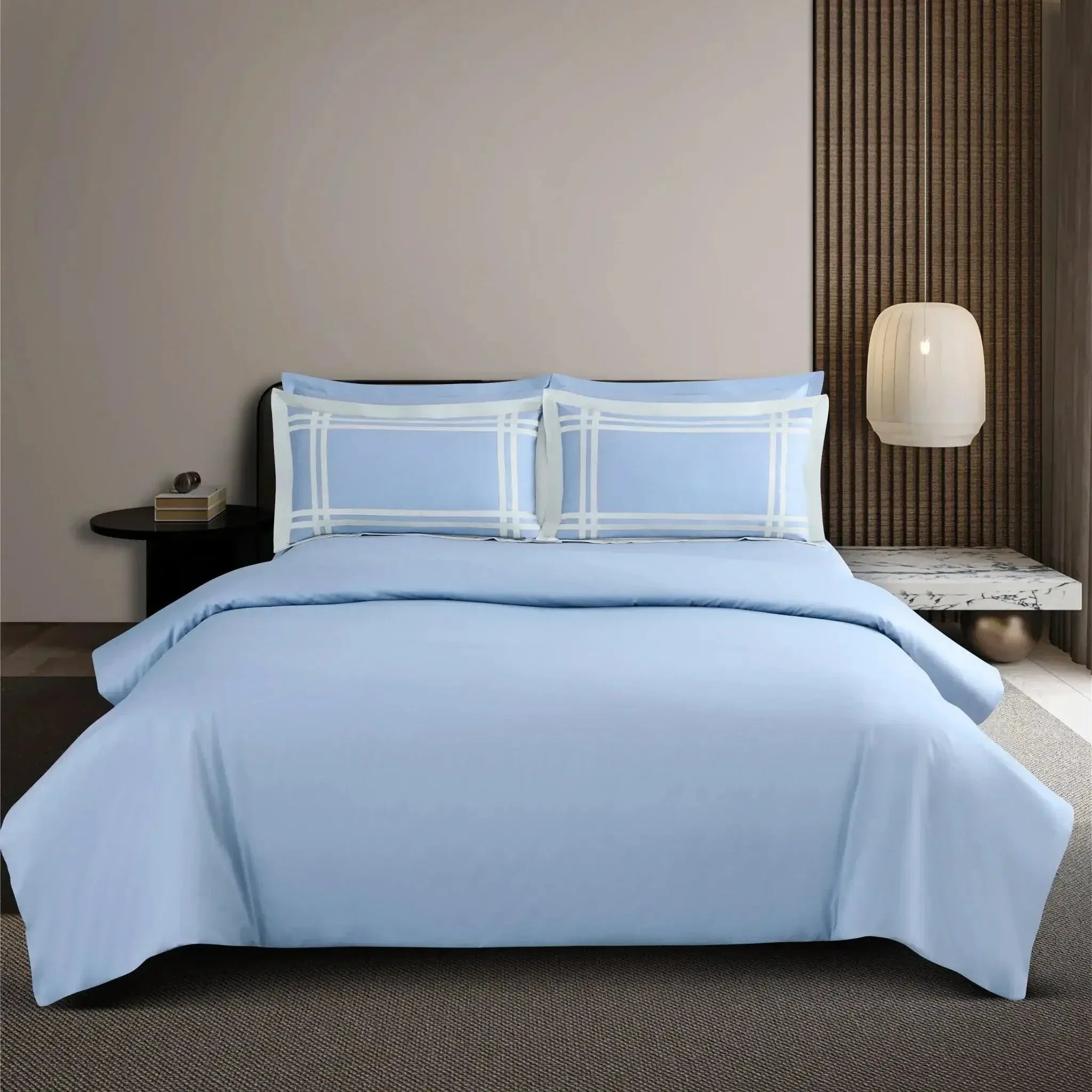 Malako Luxe: Bodo Collection 550TC Pigeon Blue 100% Cotton Super King Size Duvet Cover Set