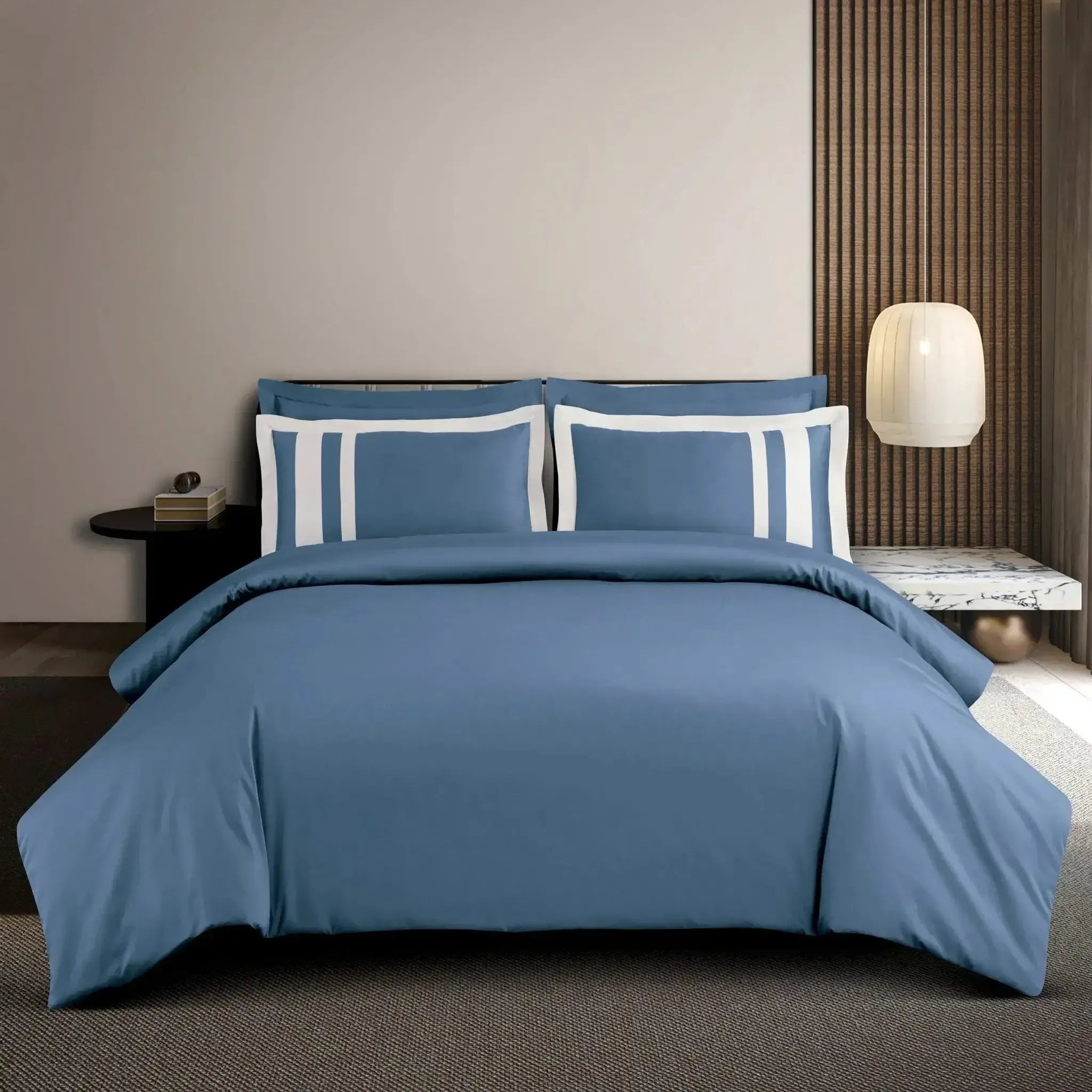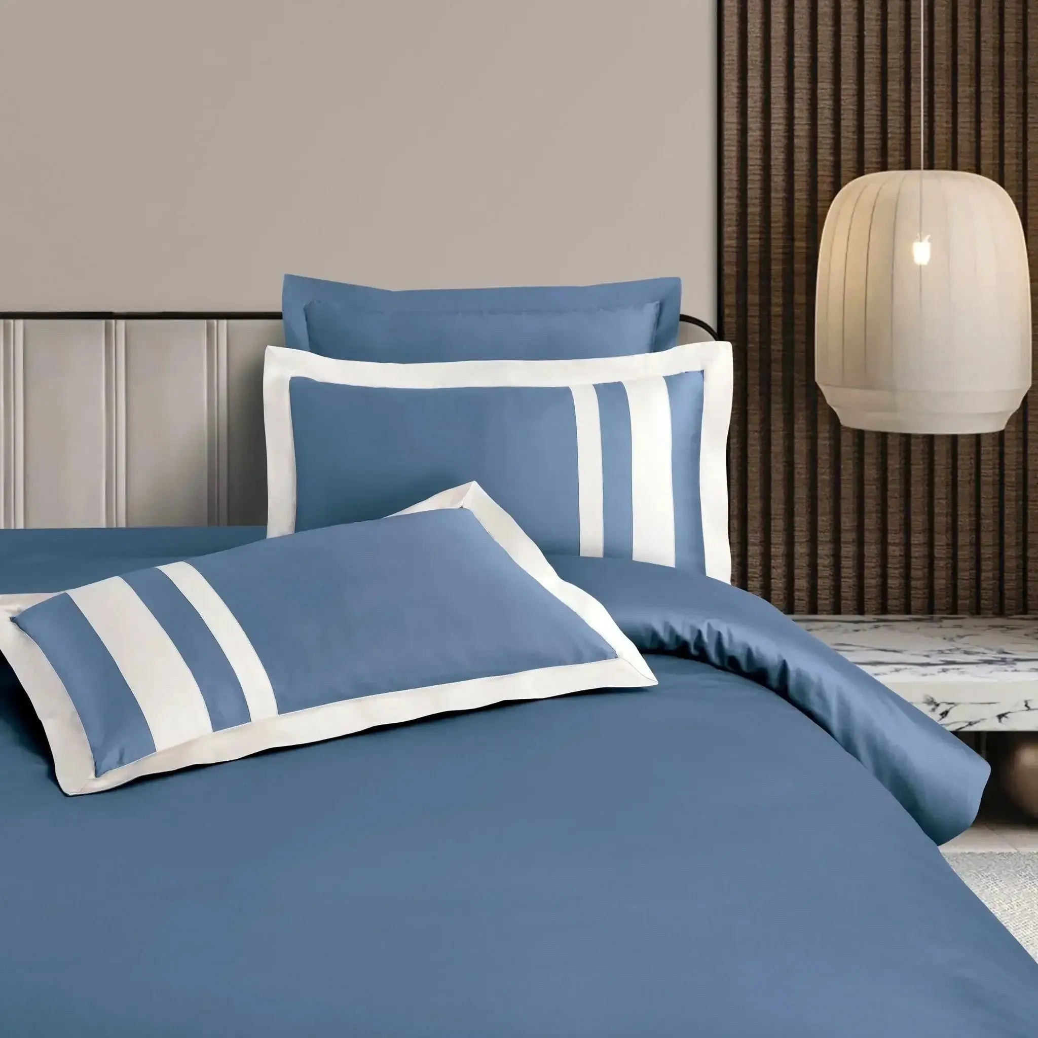 550TC King Size 6-Piece Duvet Cover Set, crafted from 100% premium cotton. The complete set includes one bedsheet, two striped pillow cases, two plain pillow covers and one duvet cover.