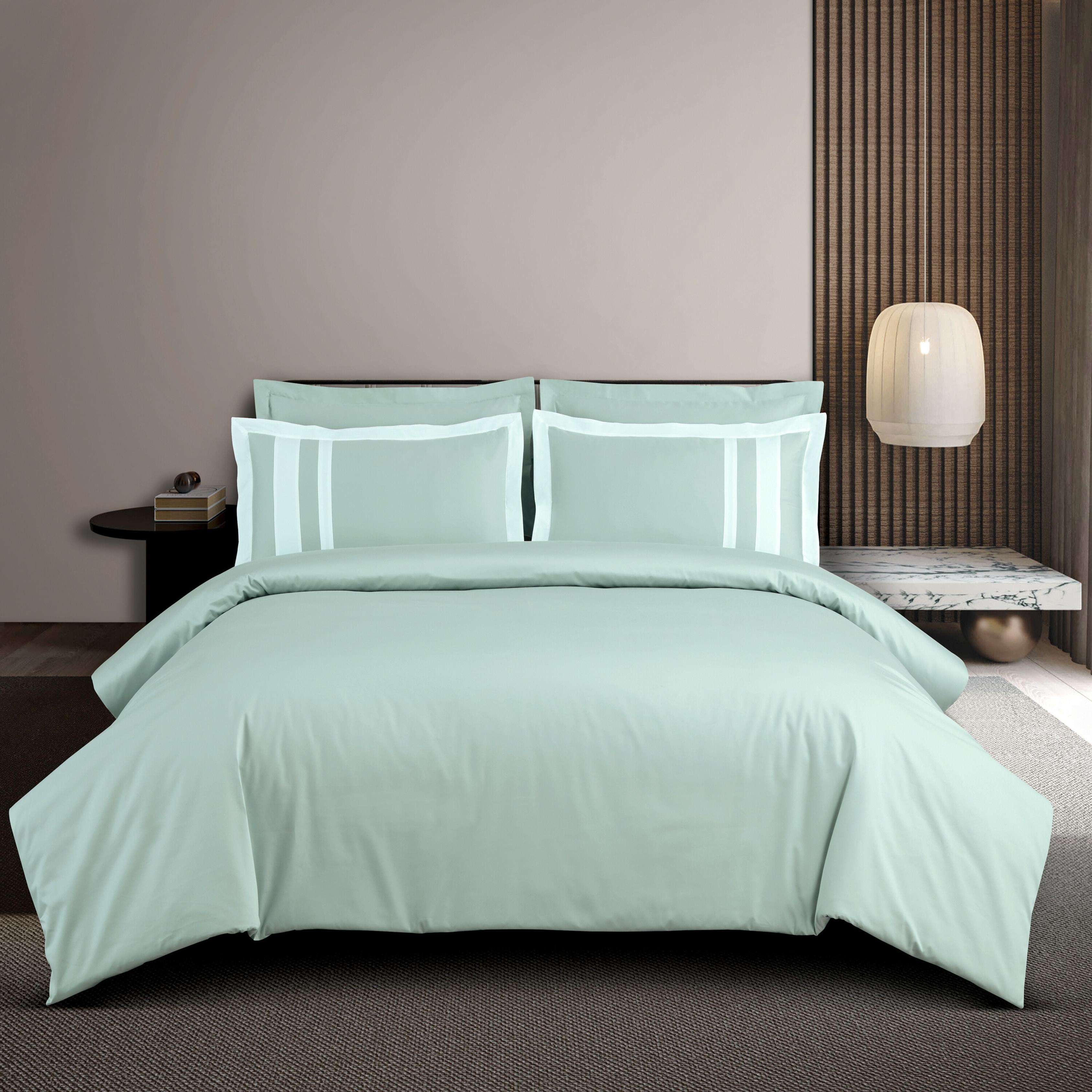 Malako Luxe: Oslo Collection 550TC Mint Green 100% Cotton Super King Size Duvet Cover Set