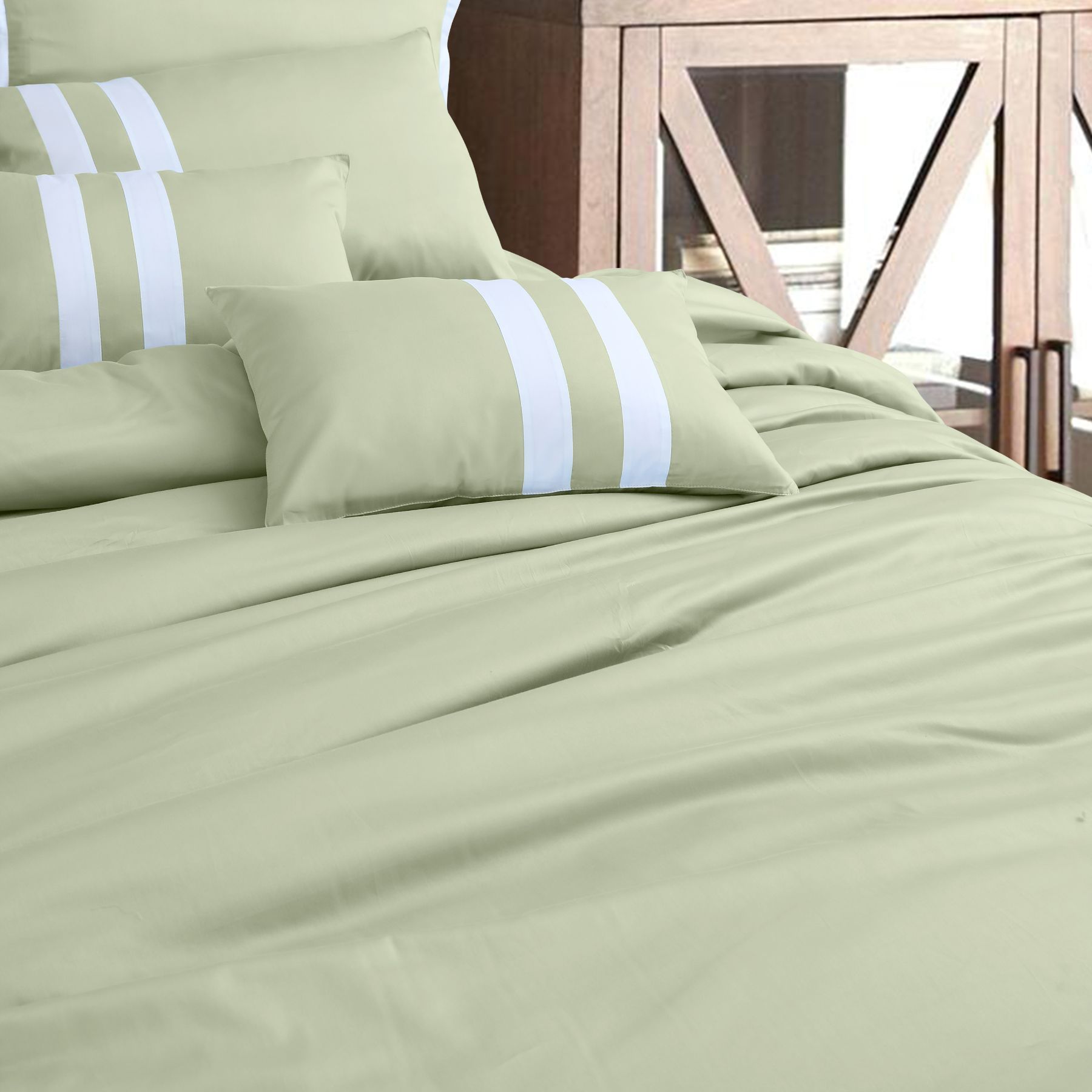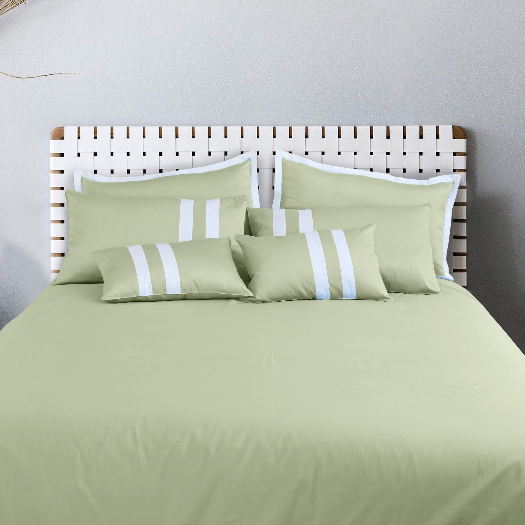Malako Luxe Sage Green Plain Striped 100% Cotton King Size Duvet Cover Set