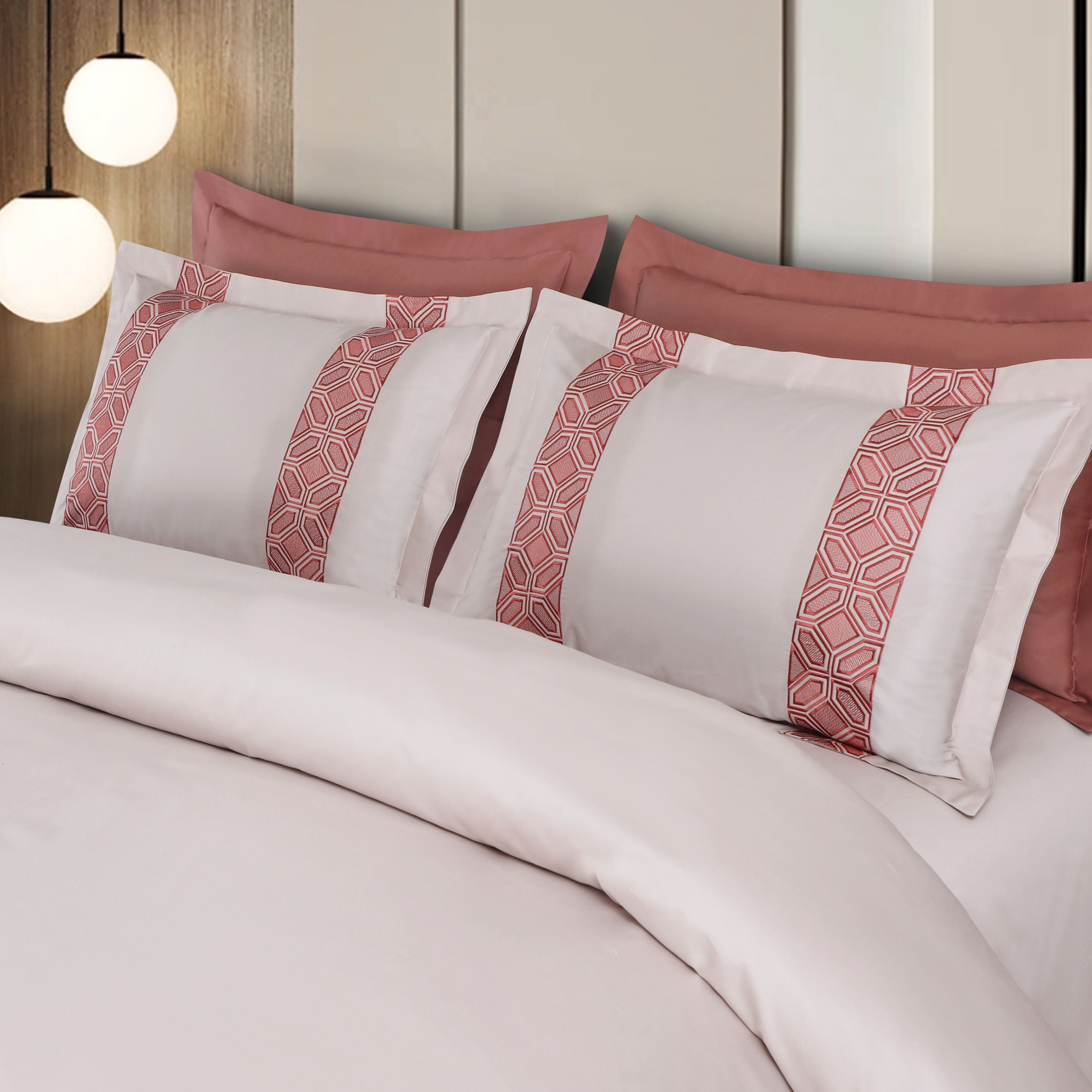 1 King Size Bedsheet (Plain), 2 Embroidered Pillow Cases, 2 Co-ordinated Plain Pillow Cases