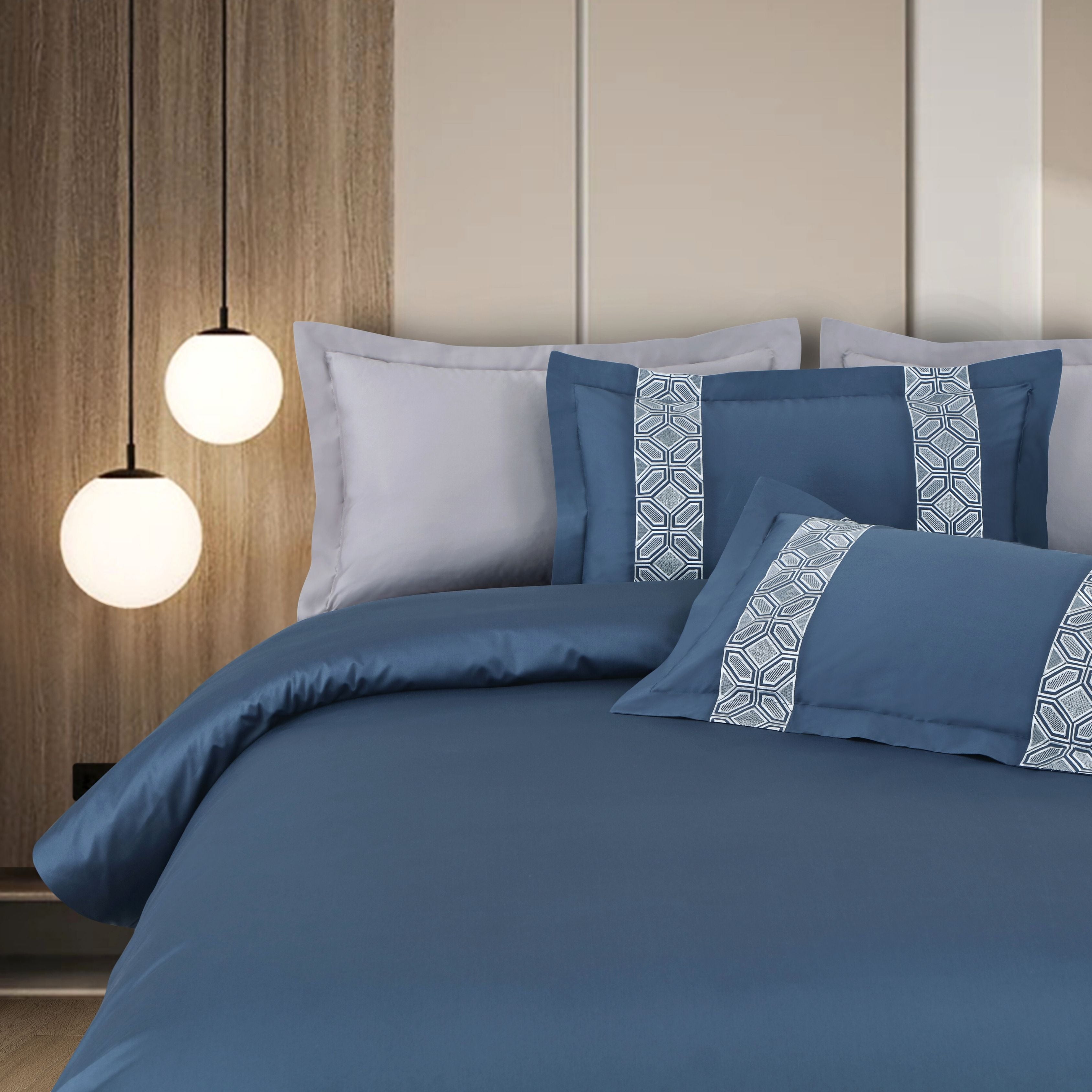 Malako Luxe Stitch & Dream: 550 TC Blue Premium Embroidered Bedding