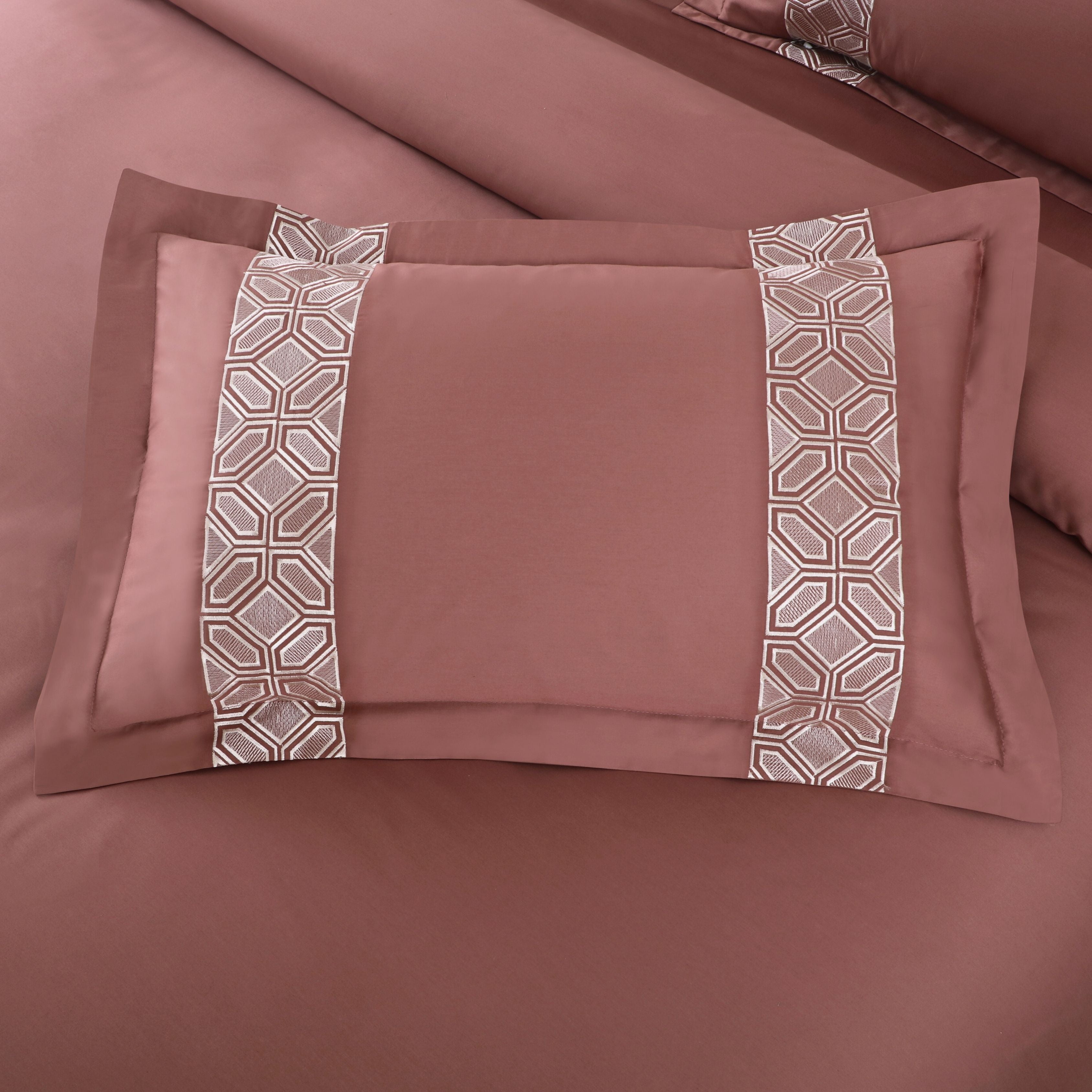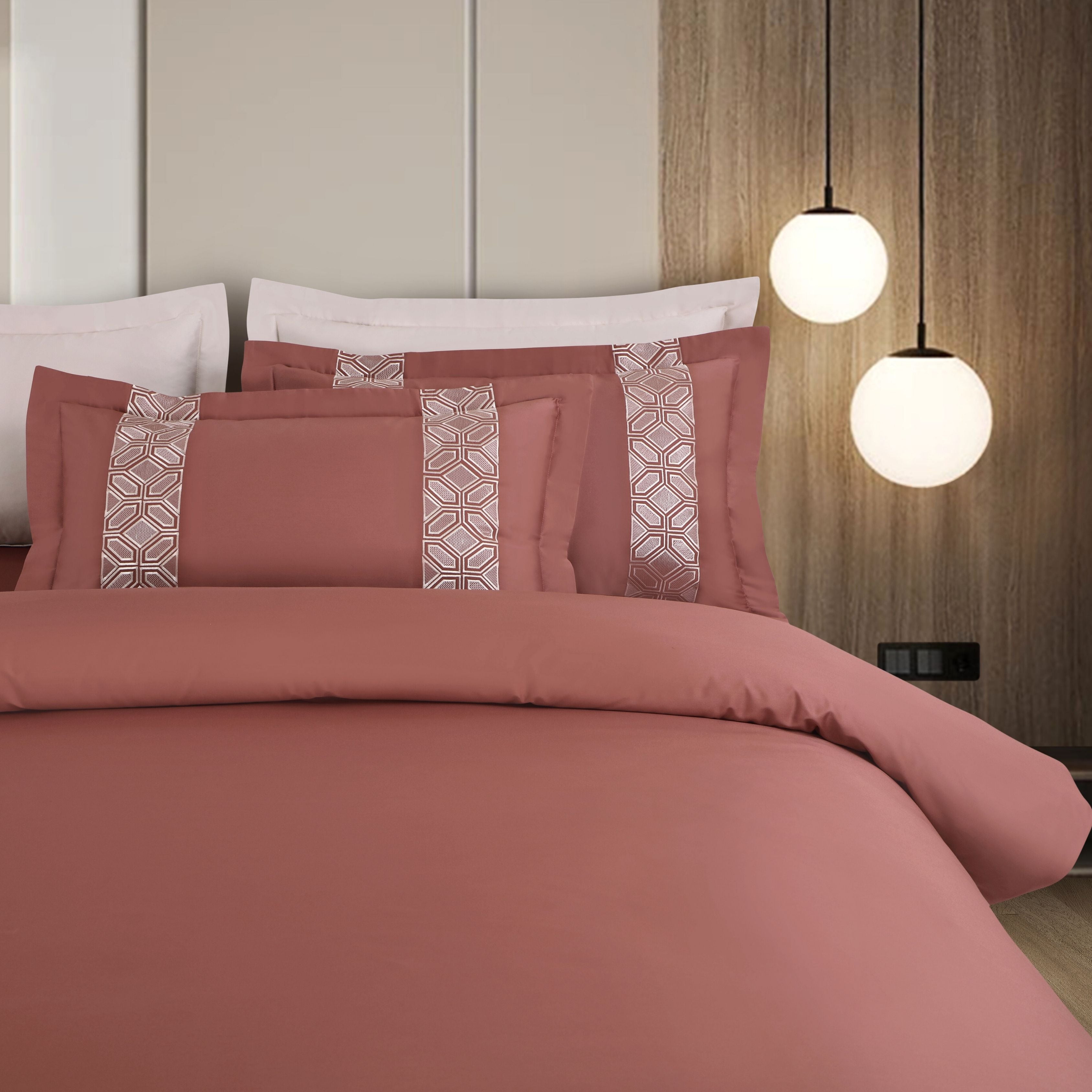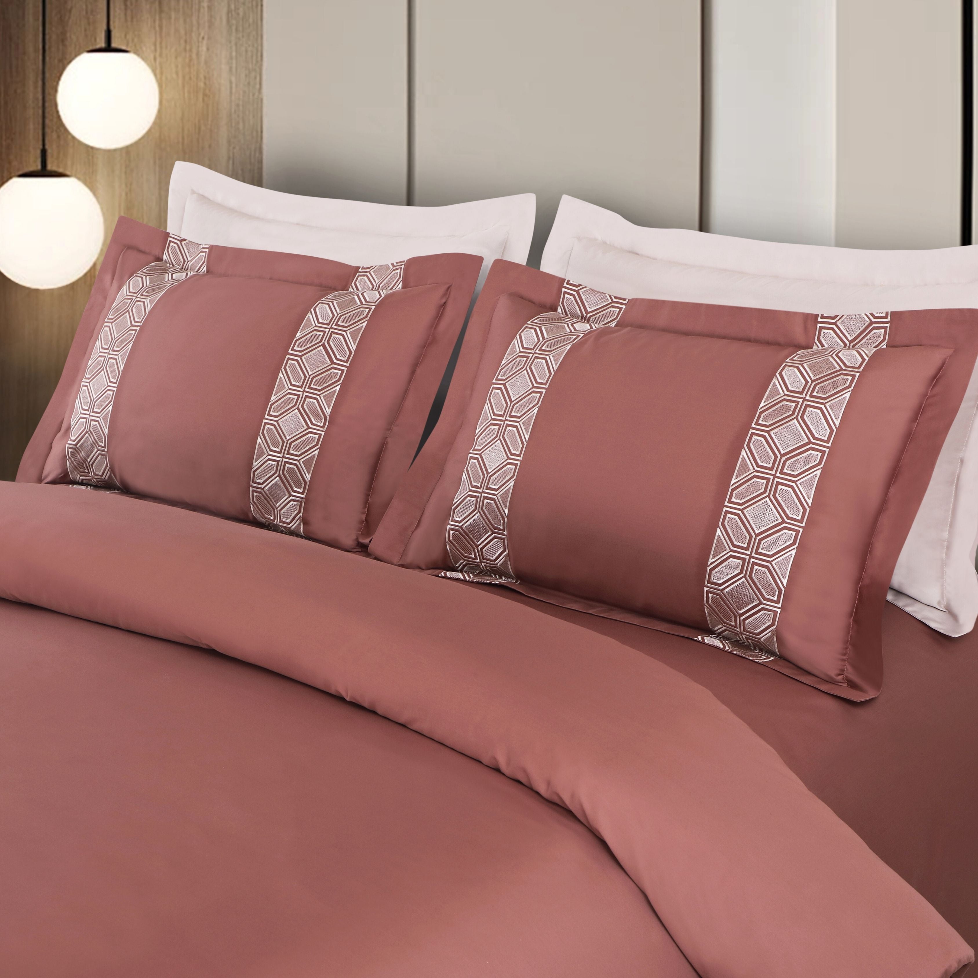 Malako Luxe Stitch & Dream: 550 TC Cedar/Rust Premium Embroidered Bedding