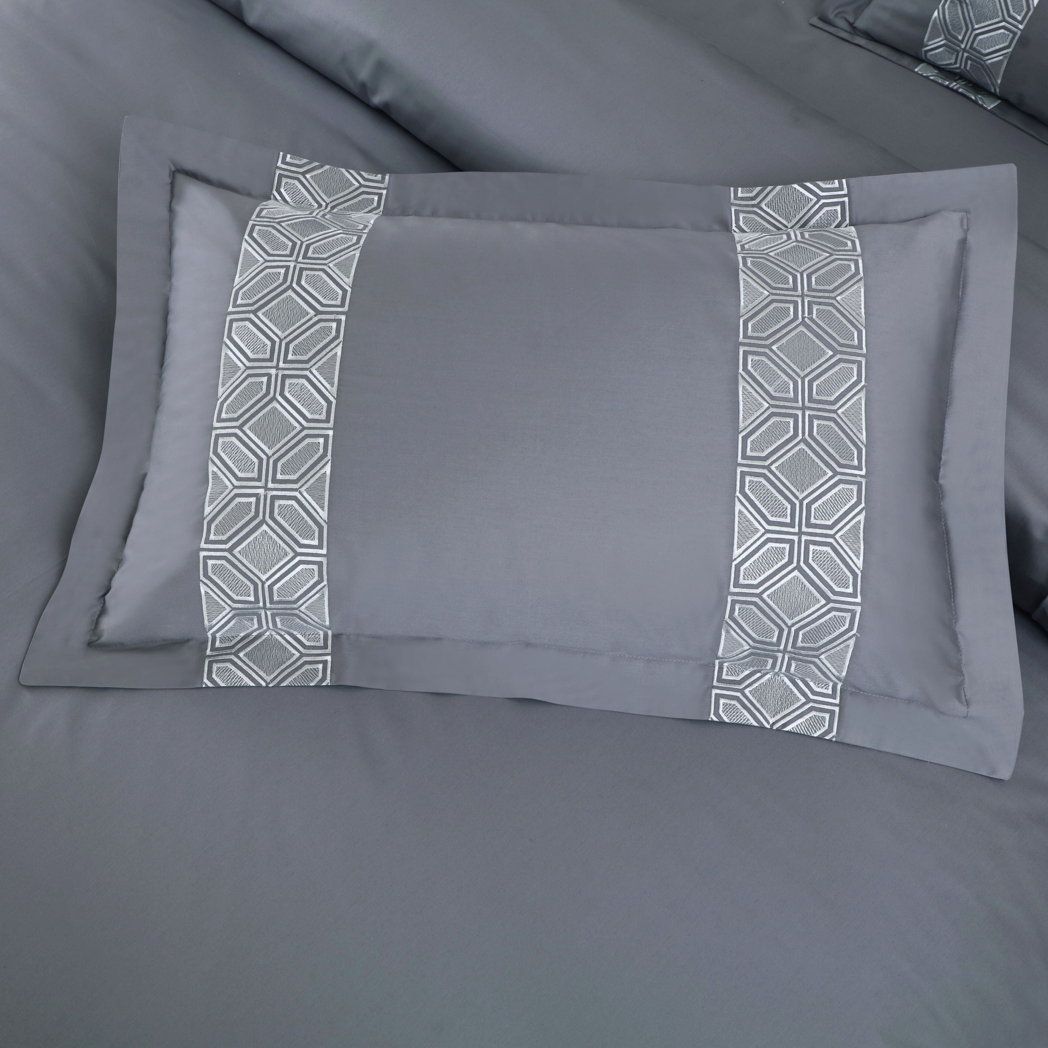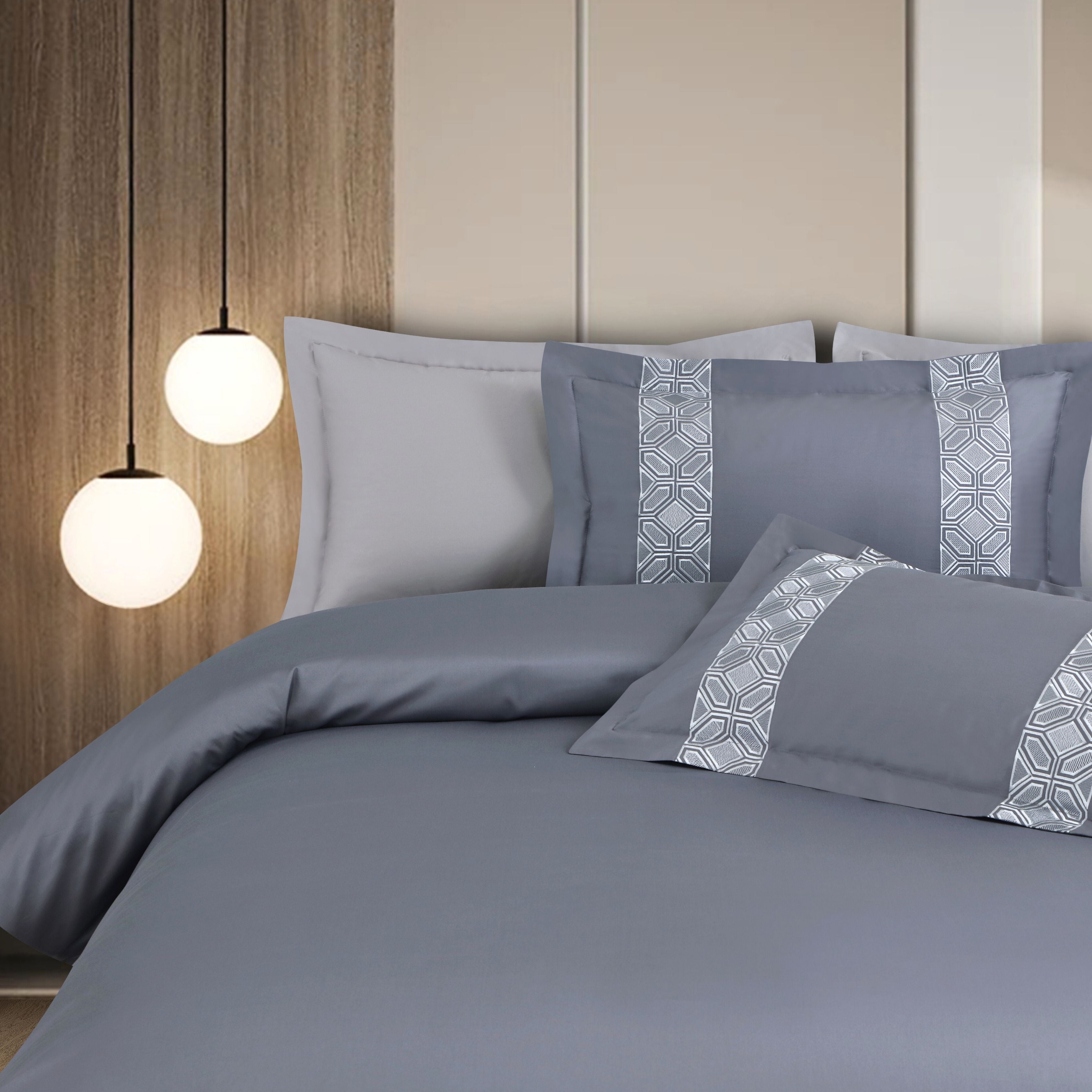 Malako Luxe Stitch & Dream: 550 TC Grey Premium Embroidered Bedding