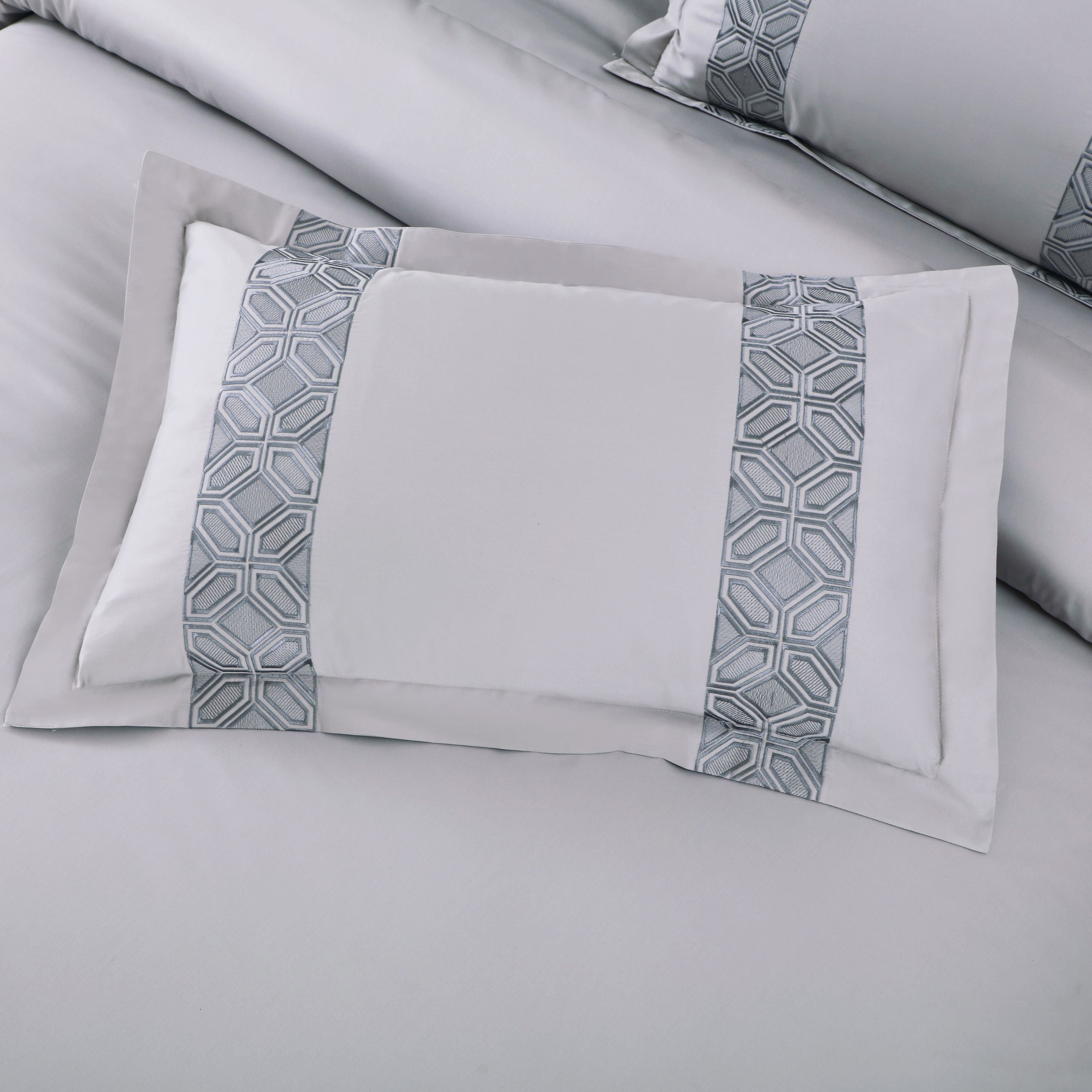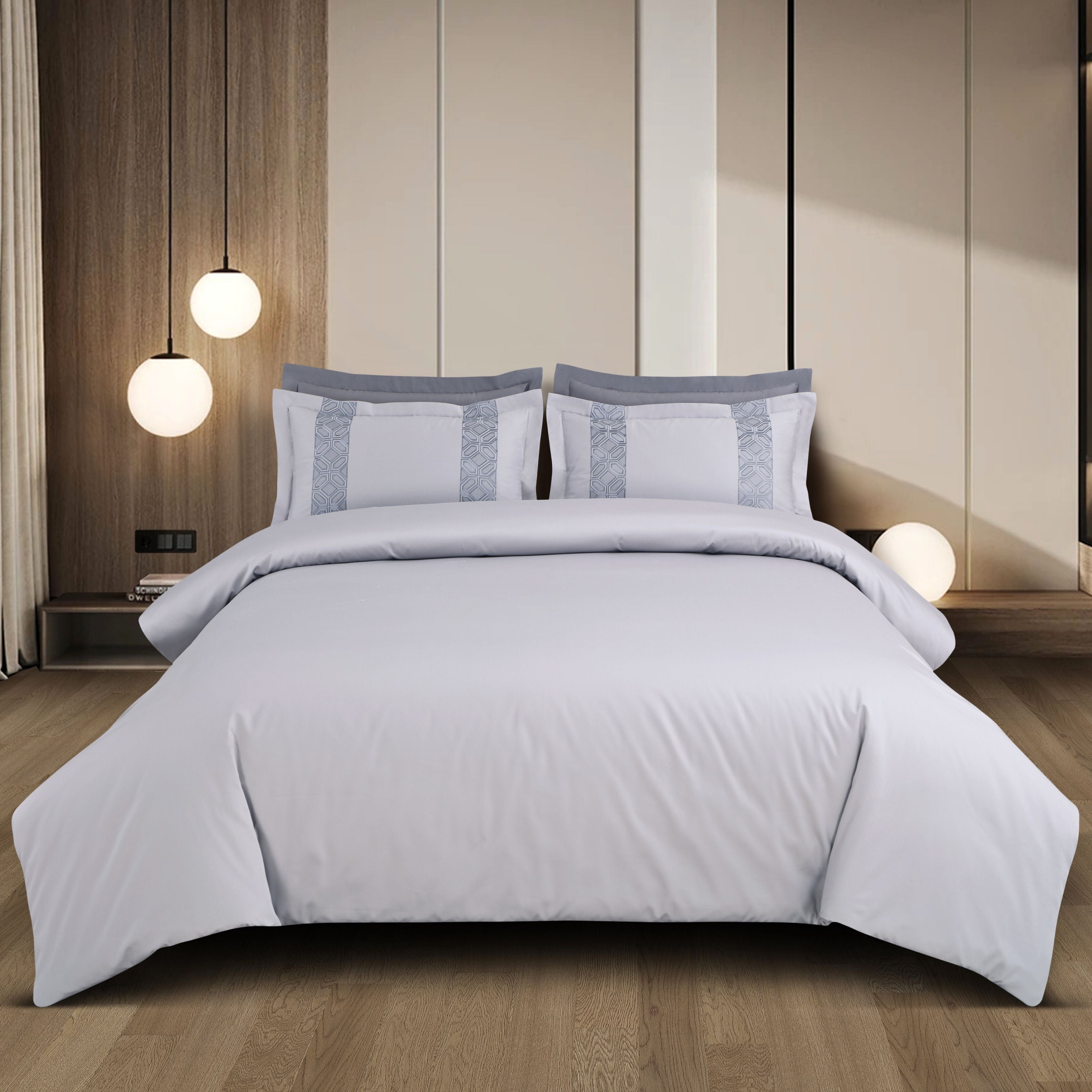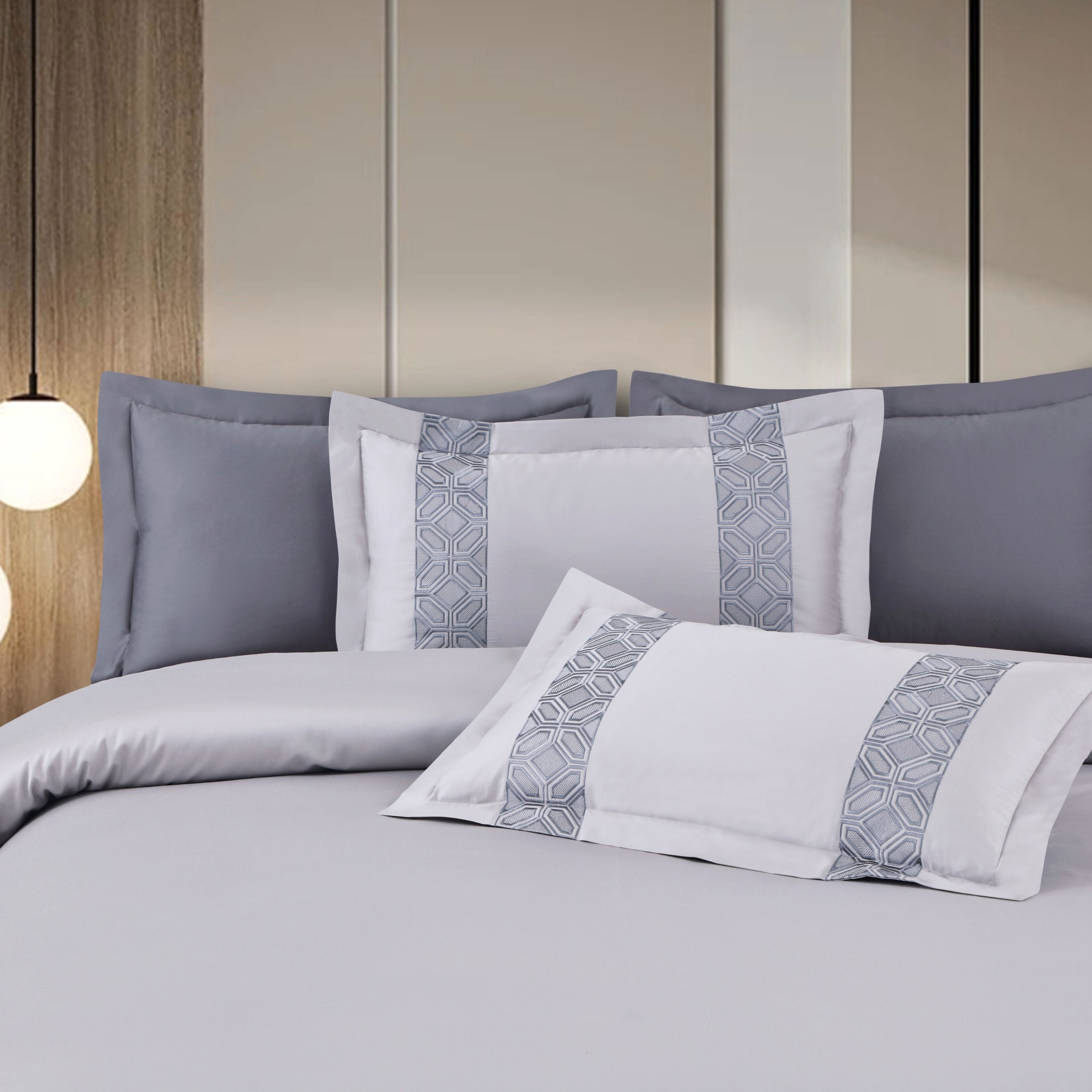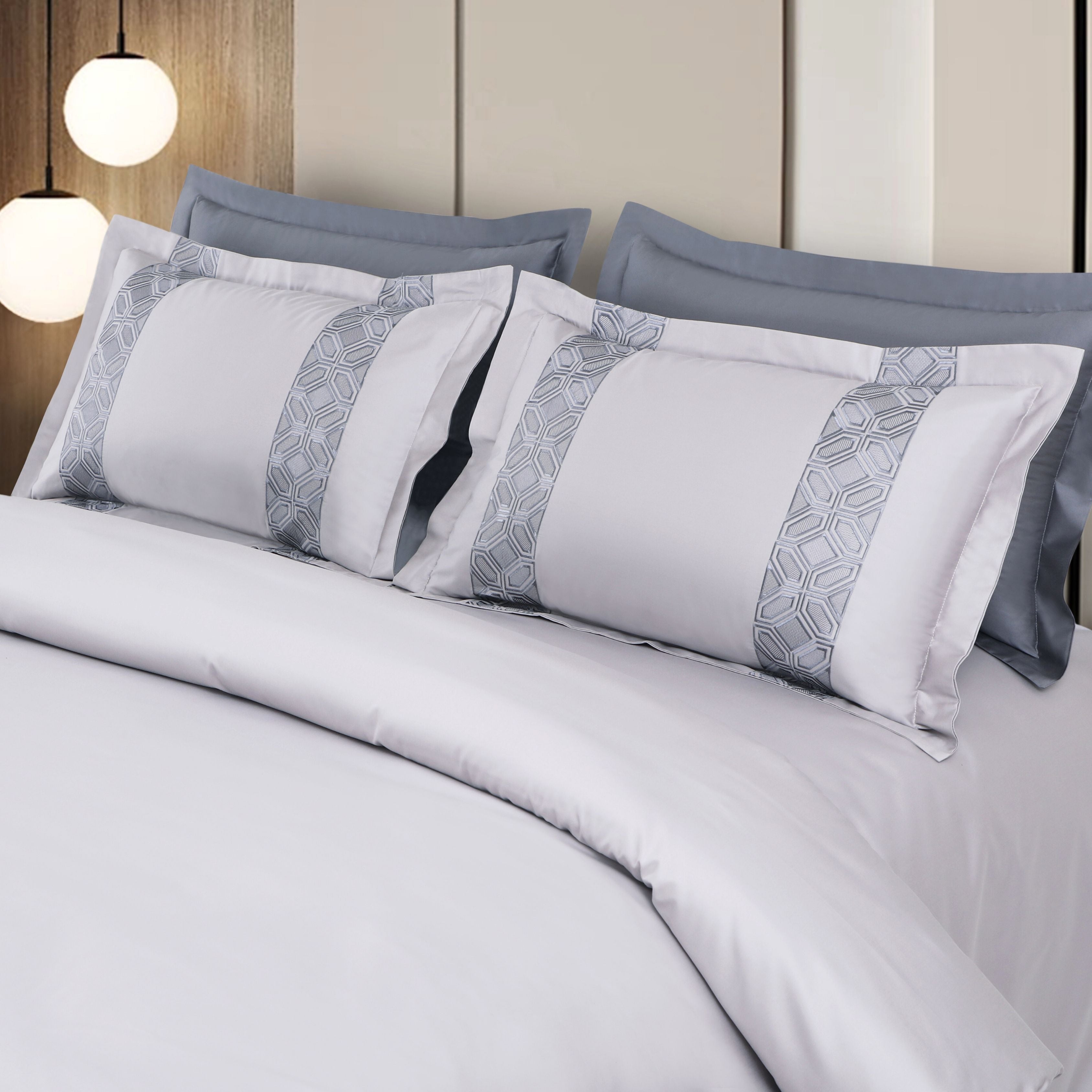 Malako Luxe Stitch & Dream: 550 TC Silver Grey Premium Embroidered Bedding