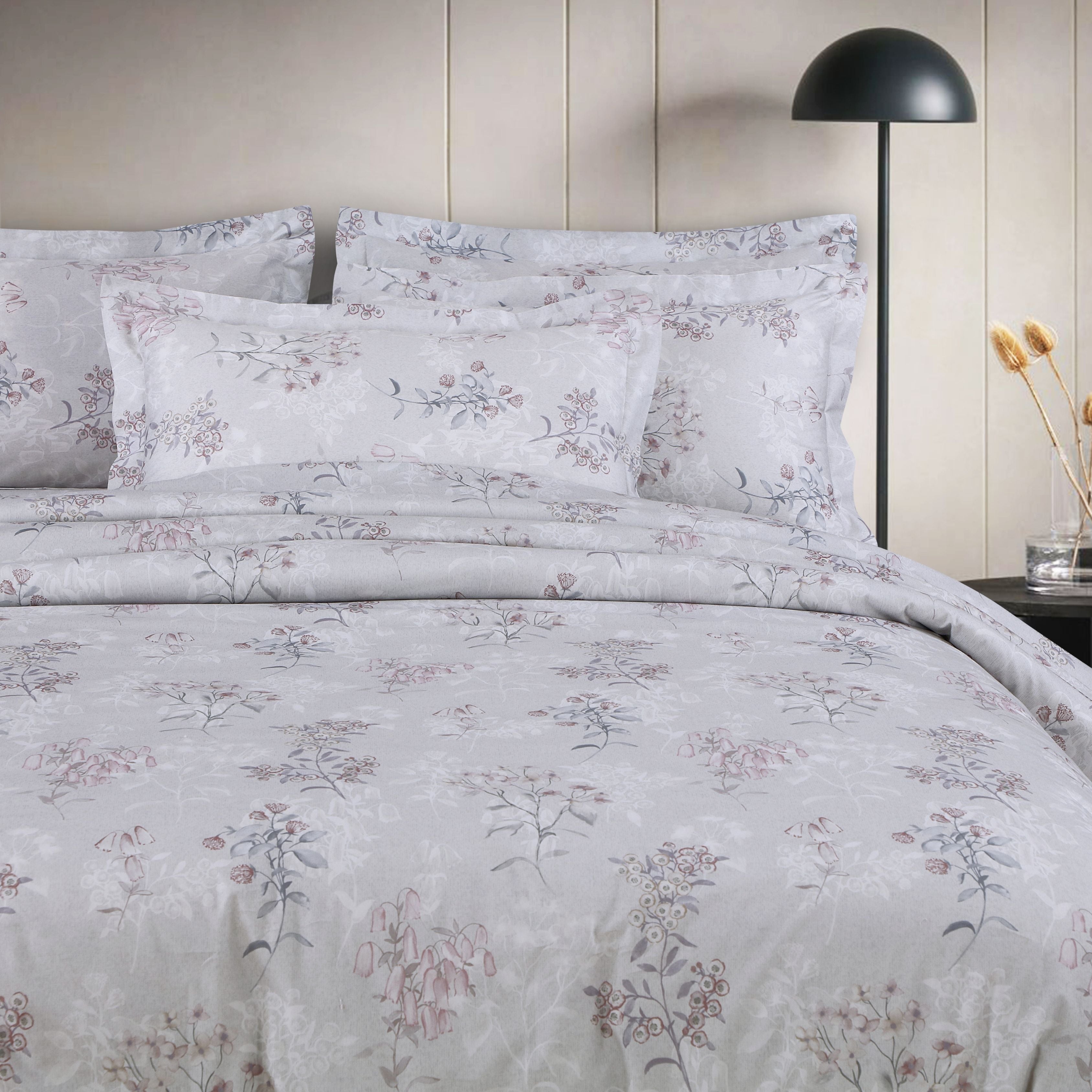 Malako Sion 100% Cotton Grey Floral King Size Bedding