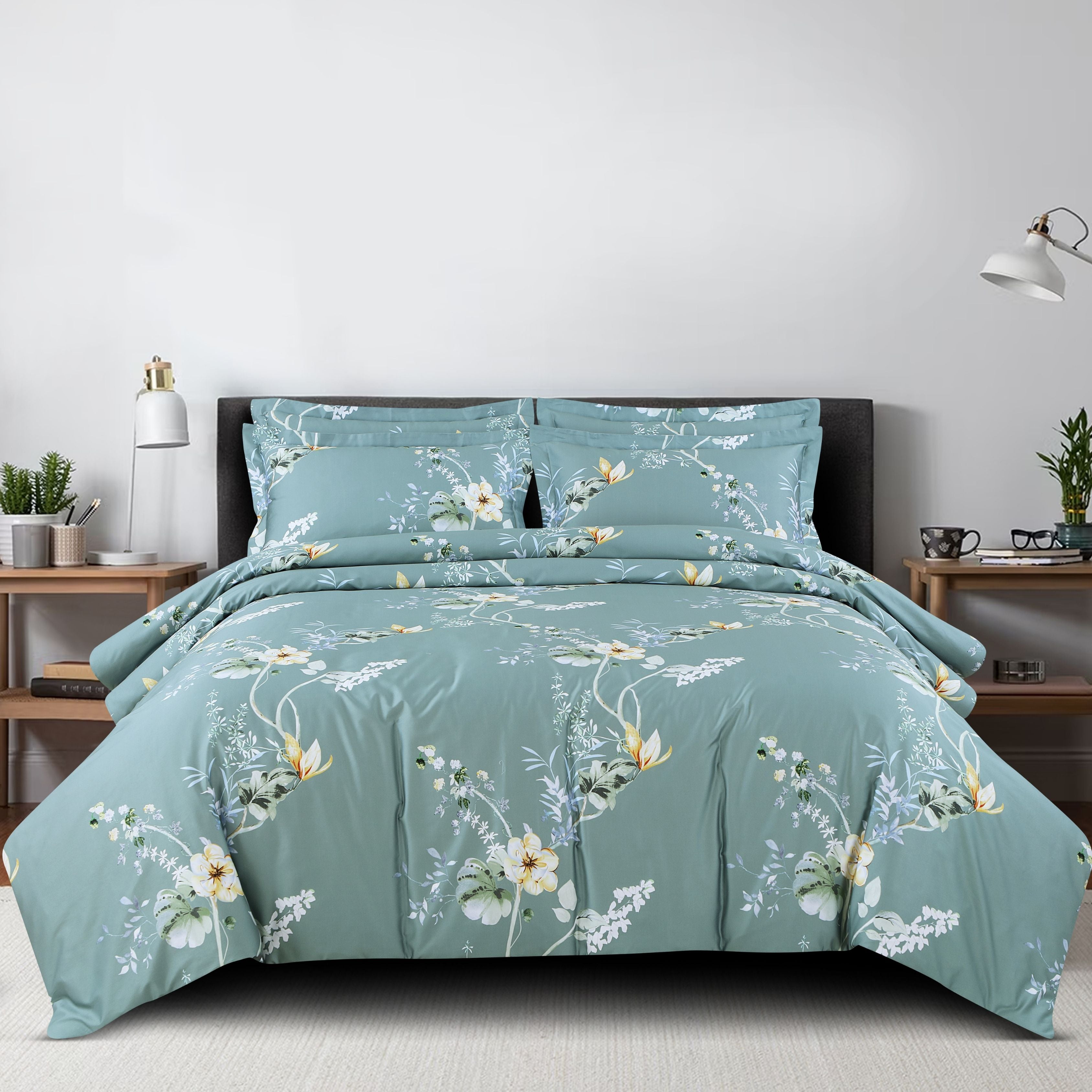 Malako Sion 100% Cotton Green Floral King Size Bedding