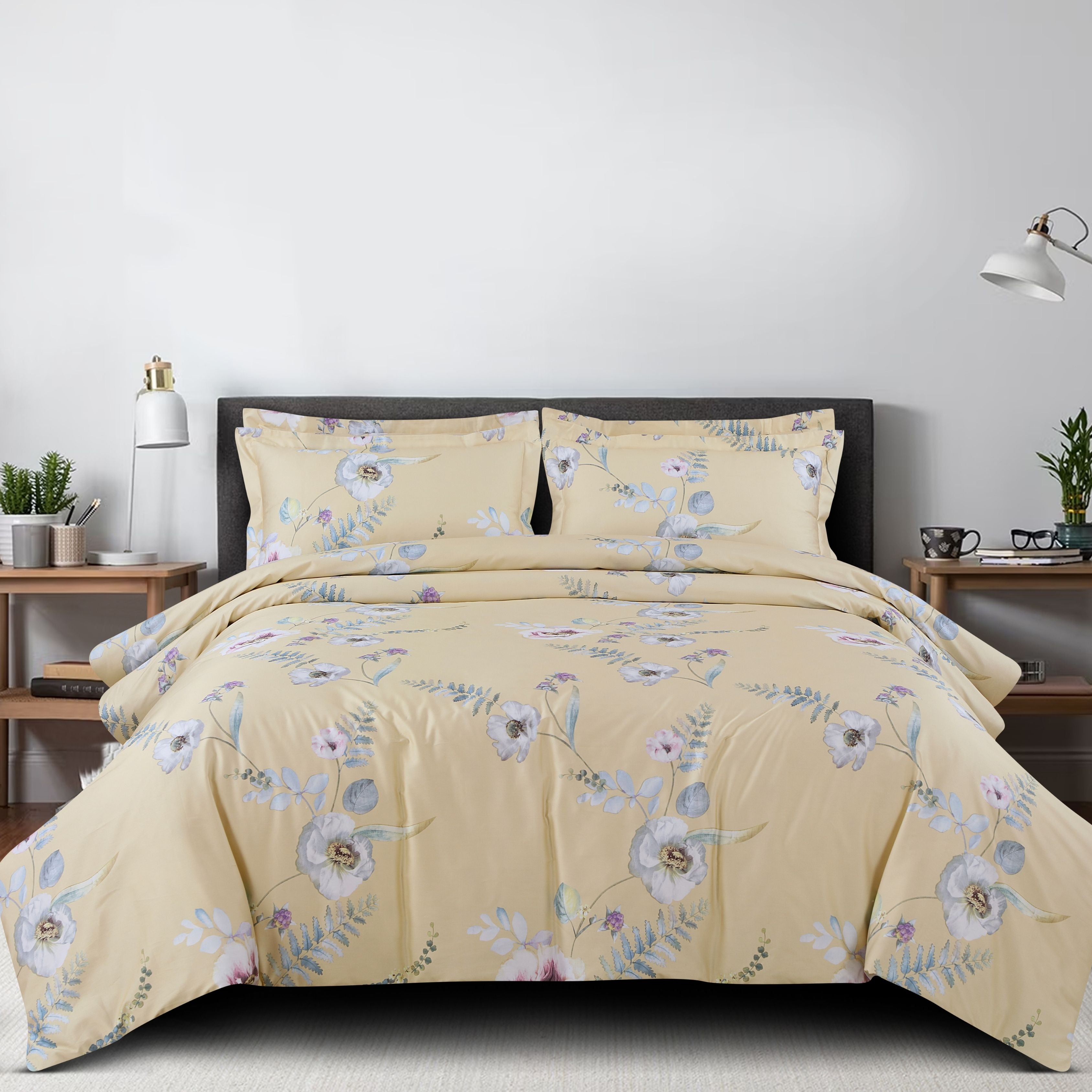 Malako Sion 100% Cotton Yellow Floral King Size Bedding