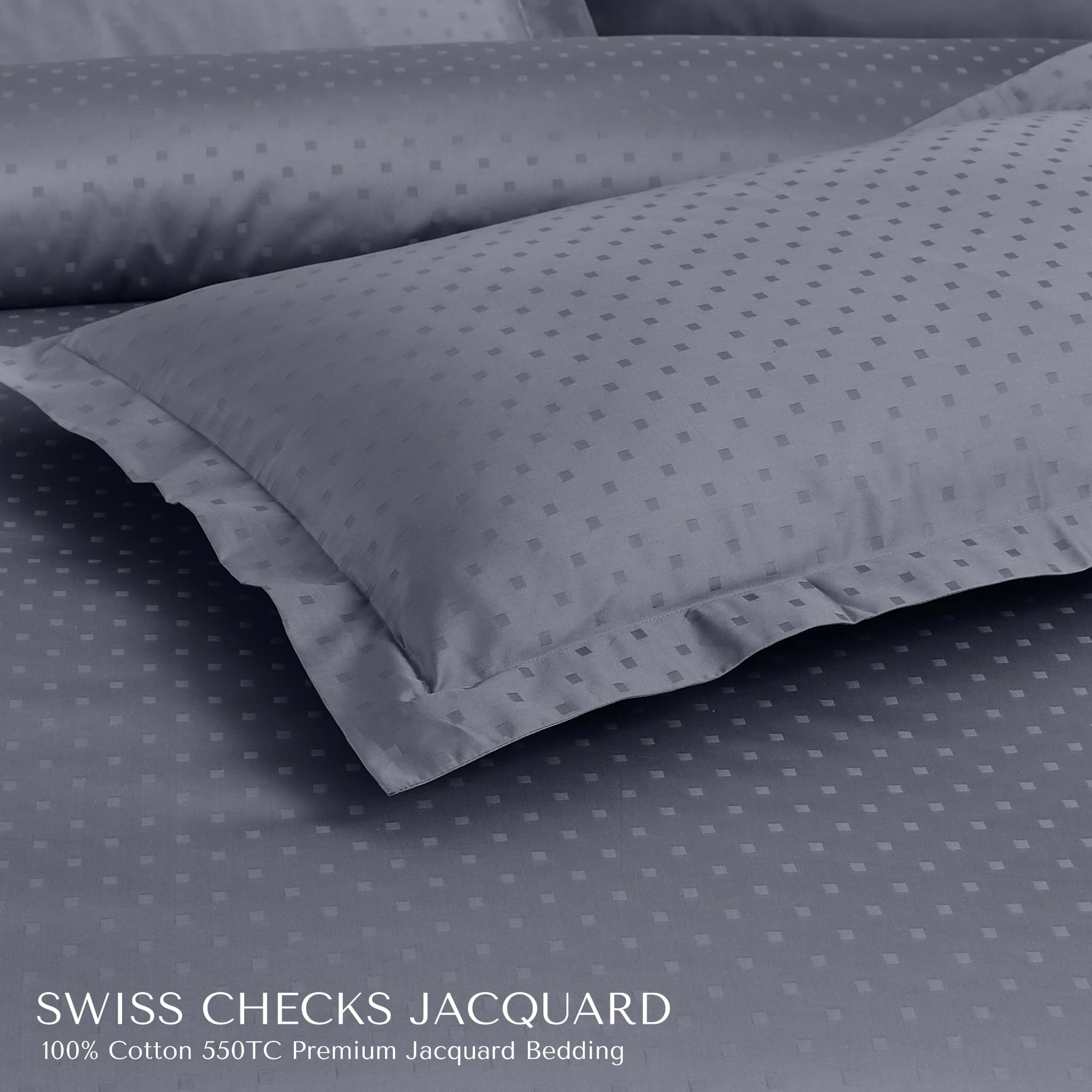 Malako Swiss Checks Jacquard Grey 550 TC 100% Cotton King Size Bedding