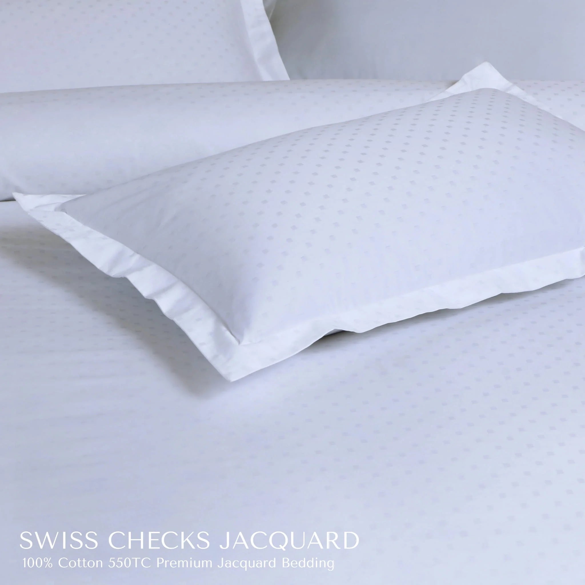 Malako Swiss Checks Jacquard Brilliant White 550 TC 100% Cotton King Size Duvet Cover Set