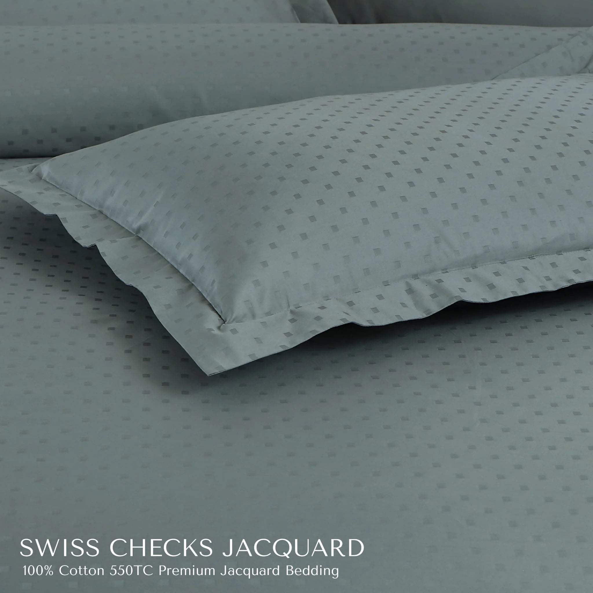 Malako Swiss Checks Jacquard Olive Green 550 TC 100% Cotton King Size Duvet Cover Set