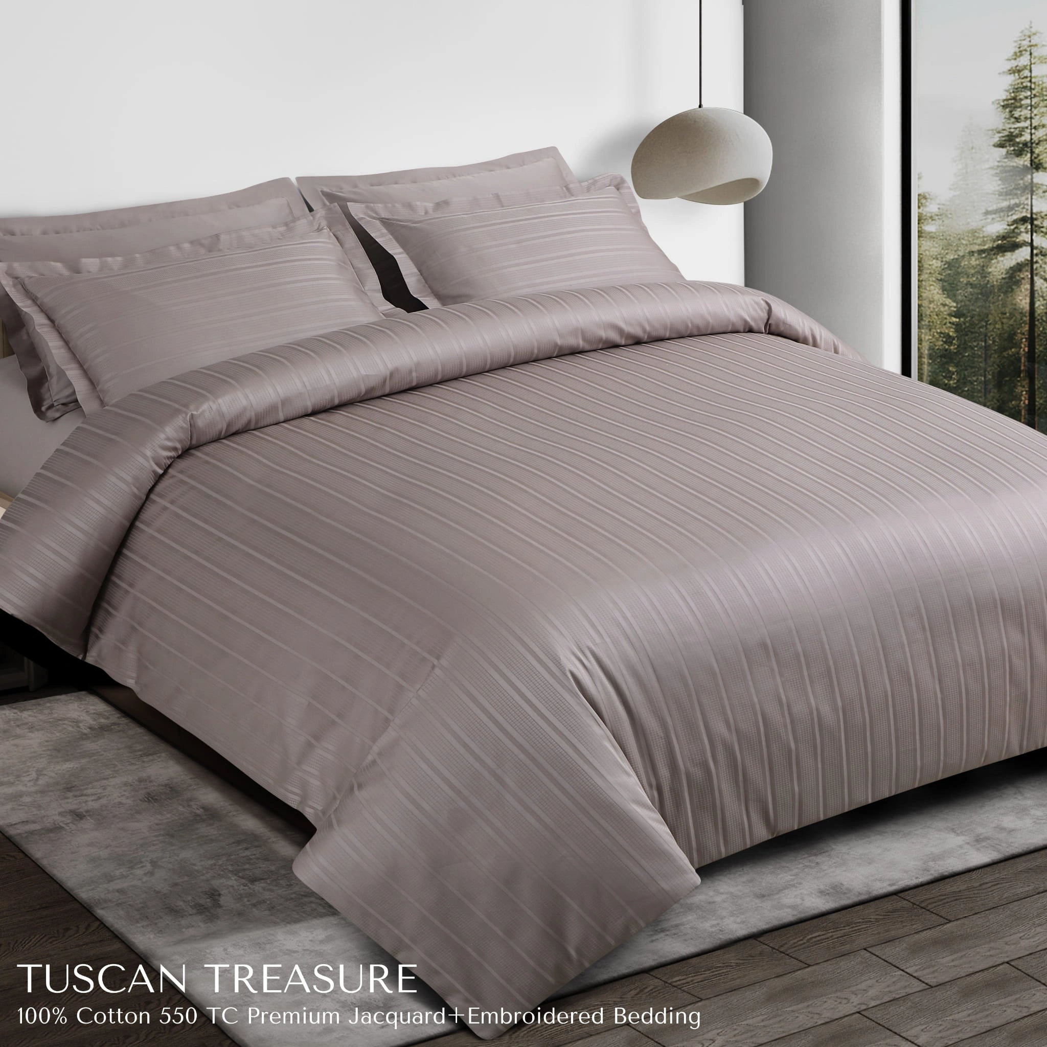 Malako Tuscan Treasure Striped Jacquard Taupe 550 TC 100% Cotton Duvet Cover